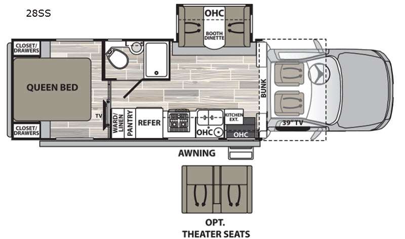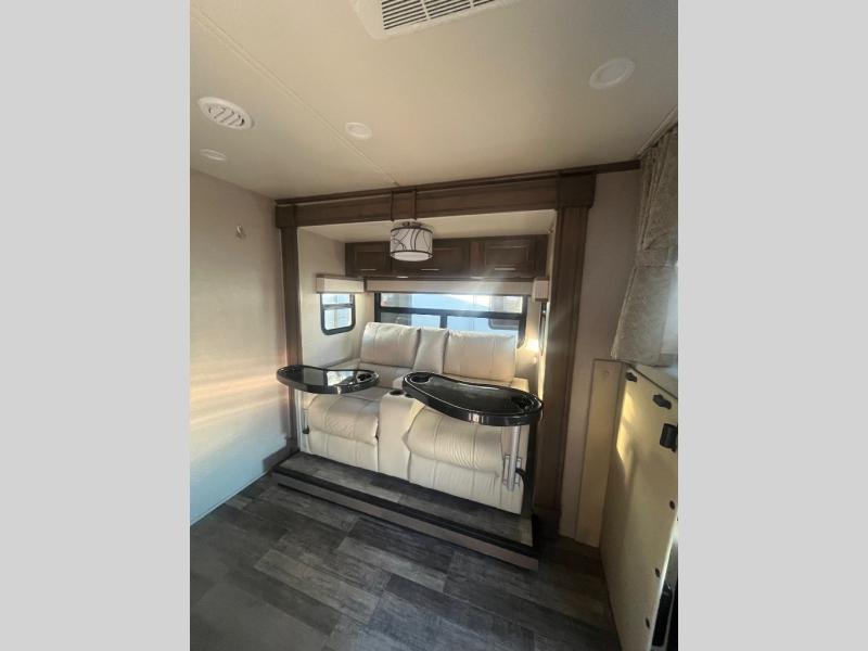 Travel in comfort with plenty of conveniences throughout in this Isata 5! You will be able to get a good night's rest in your own private bedroom and watch the 32" LED Smart TV while your guests watch the 39" LED Smart TV in the living room. They can sleep on the bunk above the cab or the dinette slide out offers extra sleeping space. The kitchen provides a convection microwave and everything else you will need to keep everyone fed including a 9 cu. ft. refrigerator. The counter extension is handy by providing more space for food prep and drying dishes. Everyone will enjoy relaxing outside under the dual-pitch, armless patio awning with LED lighting and motion-activated retraction, and appreciate the power entry steps and keyless entry touch pad. You might even like to add the factory 4-wheel drive option, and optional theater seats.