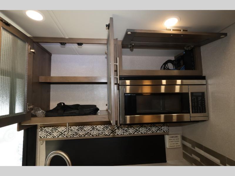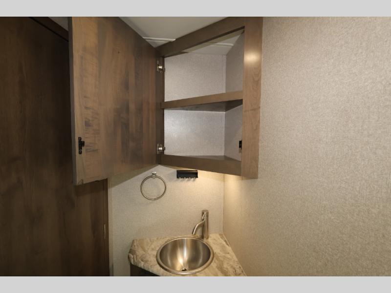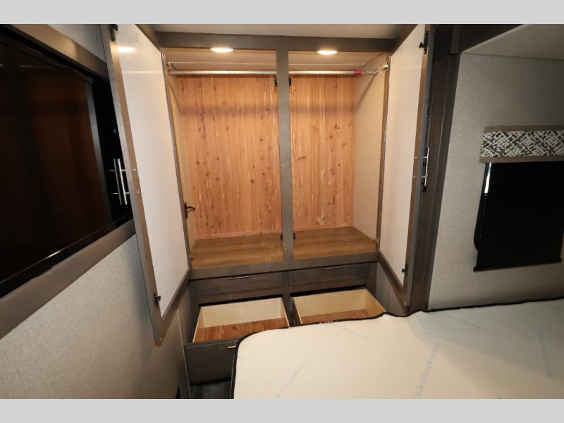 You will have your own full bathroom in the rear corner of this coach, and it is equipped with everything you will need to start your mornings off clean and fresh! You will also find plenty of seating and sleeping choices for everyone between the queen-size bed located in the rear bedroom, the bunk over the cab, the sofa, and the Dream Dinette that can be transformed into a sleeping space when you aren't enjoying a meal or playing a card game. There is not only entertainment throughout the interior with the 39" LED Smart TV above the cab and the 32" LED Smart TV in the bedroom, but there is also an exterior wall-mounted entertainment center with a 32" LED Smart TV. And you might decide to venture off-road, choose the factory 4-wheel drive option and start your adventures!