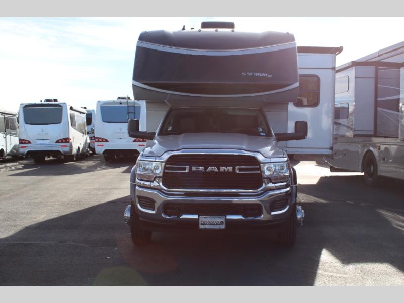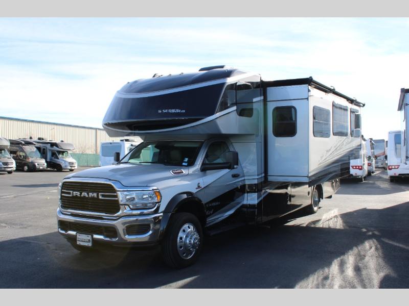 With any Isata 5 Series Super C diesel motorhome by Dynamax, the driver will appreciate the 360 HP from the 6.7L I6 turbo diesel engine, the Cummins Smart exhaust brake system, the RAM ESC suspension and stability package, and the tire pressuring monitoring system, plus the automatic, 4-point hydraulic leveling jacks with Bluetooth and seamless rotocast storage compartments with LED lighting when setting up camp. The premium vinyl flooring throughout, the hardwood shaker-style cabinetry, the hidden hinges, and the Winegard ConnecT 2.0 dome antenna are a few more reasons you will enjoy every time you are in this RV! Choose your favorite Isata 5 today, and start experiencing RV-friendly features and extra touches!