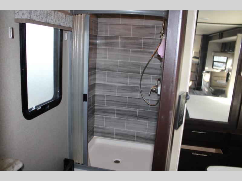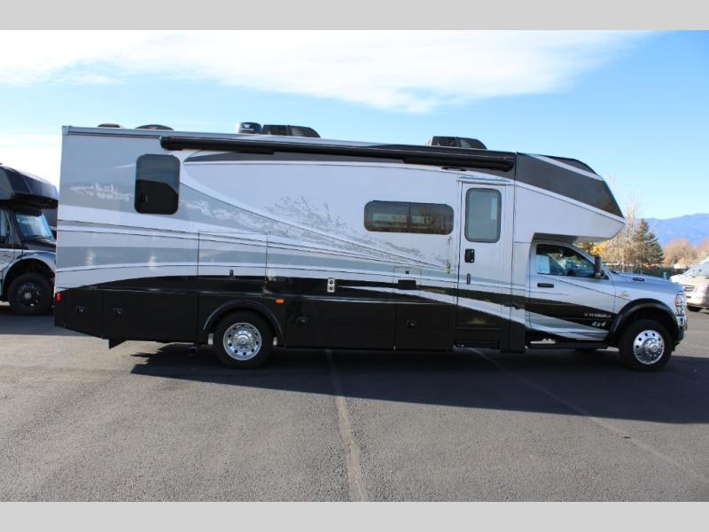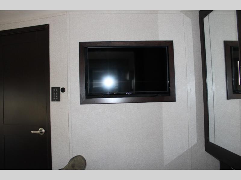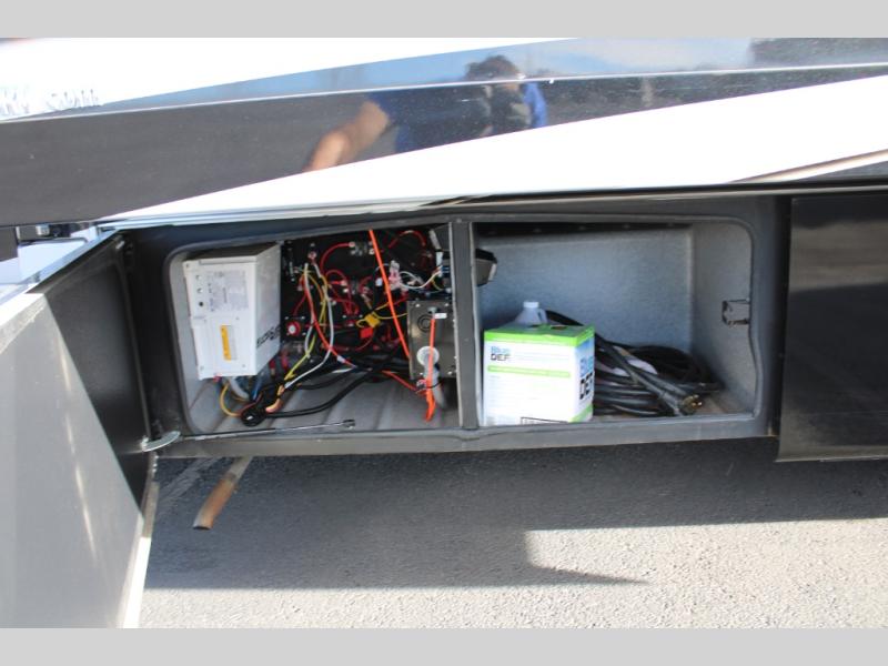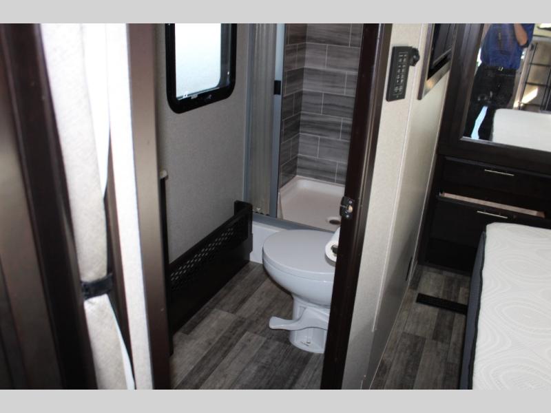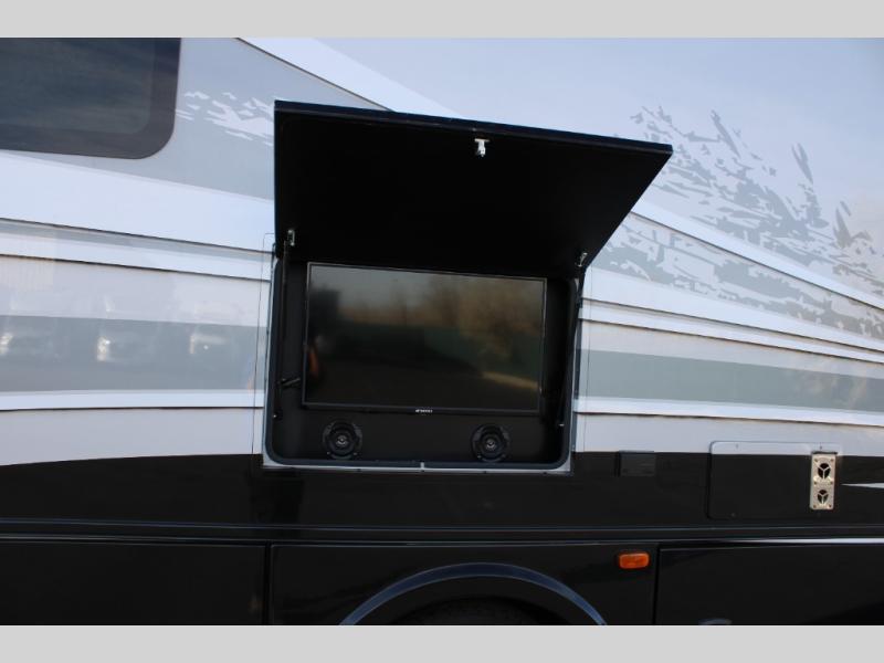 You will have your own full bathroom in the rear corner of this coach, and it is equipped with everything you will need to start your mornings off clean and fresh! You will also find plenty of seating and sleeping choices for everyone between the queen-size bed located in the rear bedroom, the bunk over the cab, the sofa, and the Dream Dinette that can be transformed into a sleeping space when you aren't enjoying a meal or playing a card game. There is not only entertainment throughout the interior with the 39" LED Smart TV above the cab and the 32" LED Smart TV in the bedroom, but there is also an exterior wall-mounted entertainment center with a 32" LED Smart TV. And you might decide to venture off-road, choose the factory 4-wheel drive option and start your adventures!