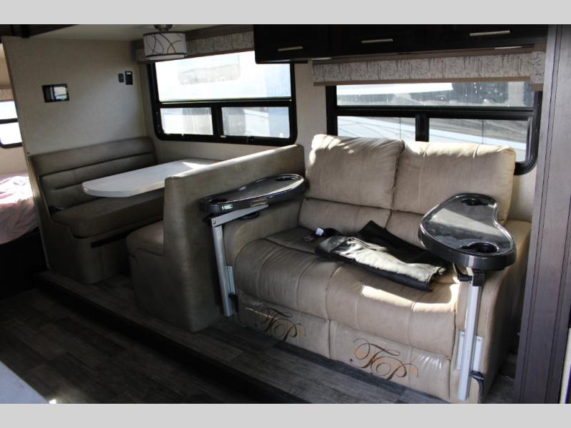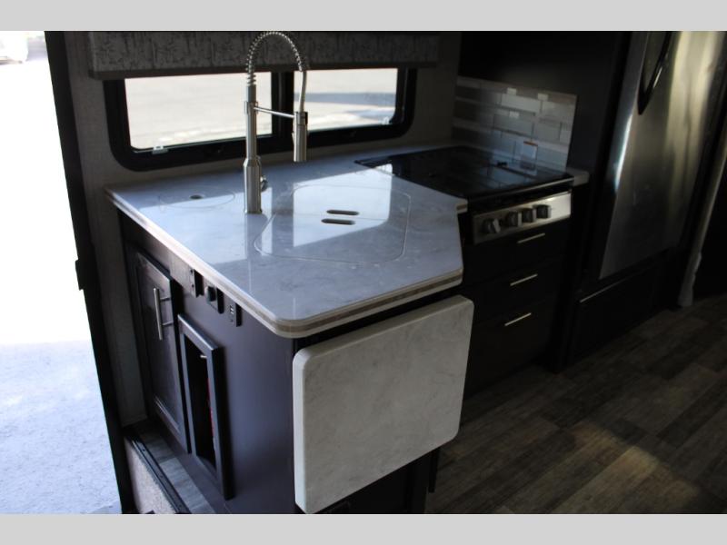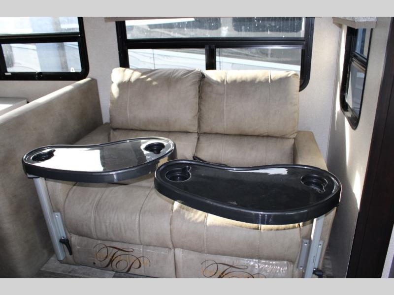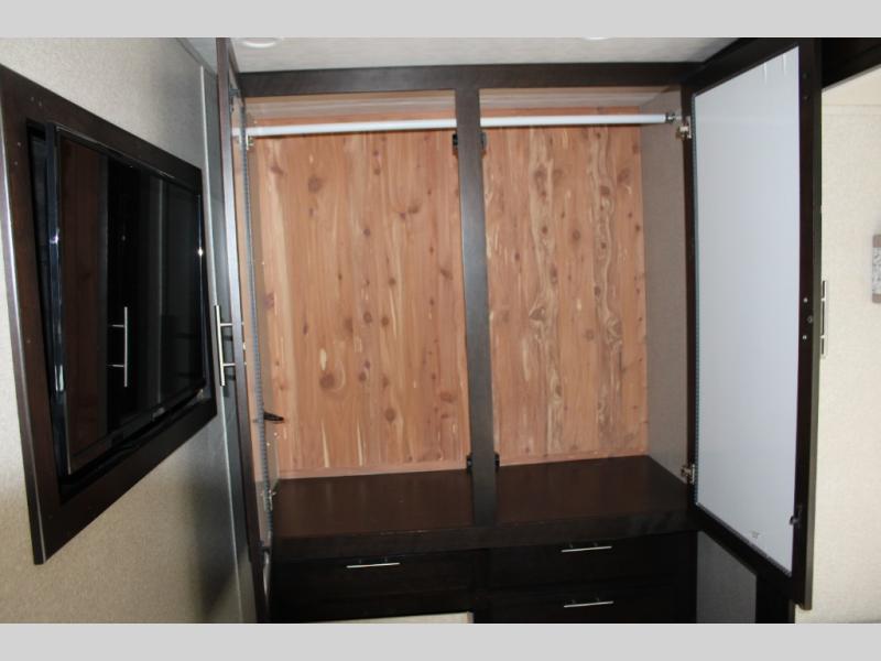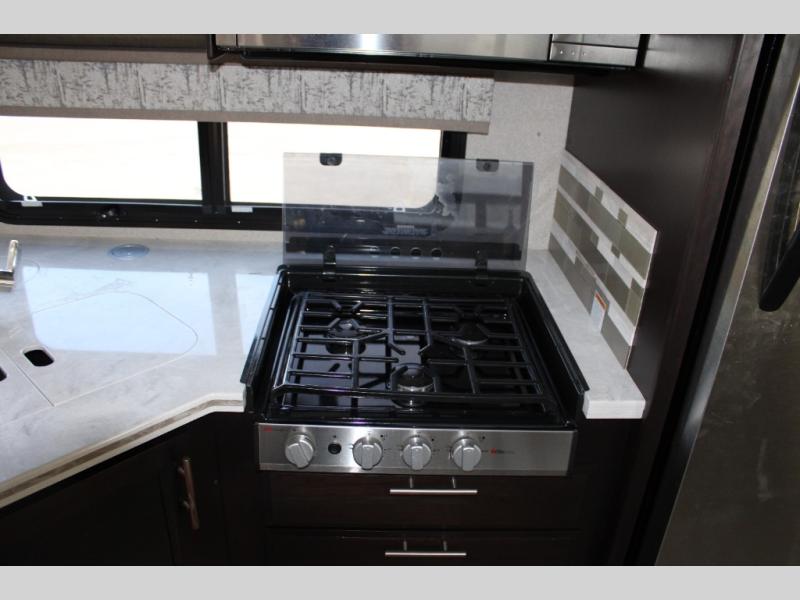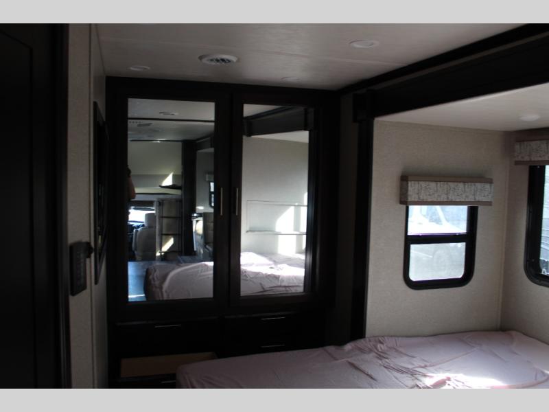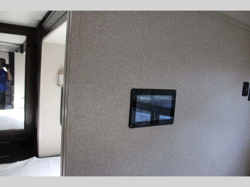 You will have your own full bathroom in the rear corner of this coach, and it is equipped with everything you will need to start your mornings off clean and fresh! You will also find plenty of seating and sleeping choices for everyone between the queen-size bed located in the rear bedroom, the bunk over the cab, the sofa, and the Dream Dinette that can be transformed into a sleeping space when you aren't enjoying a meal or playing a card game. There is not only entertainment throughout the interior with the 39" LED Smart TV above the cab and the 32" LED Smart TV in the bedroom, but there is also an exterior wall-mounted entertainment center with a 32" LED Smart TV. And you might decide to venture off-road, choose the factory 4-wheel drive option and start your adventures!