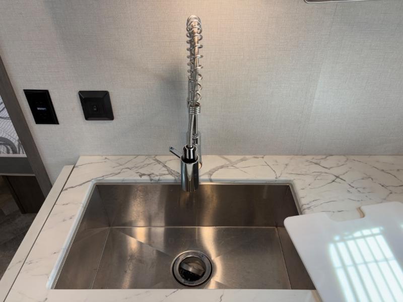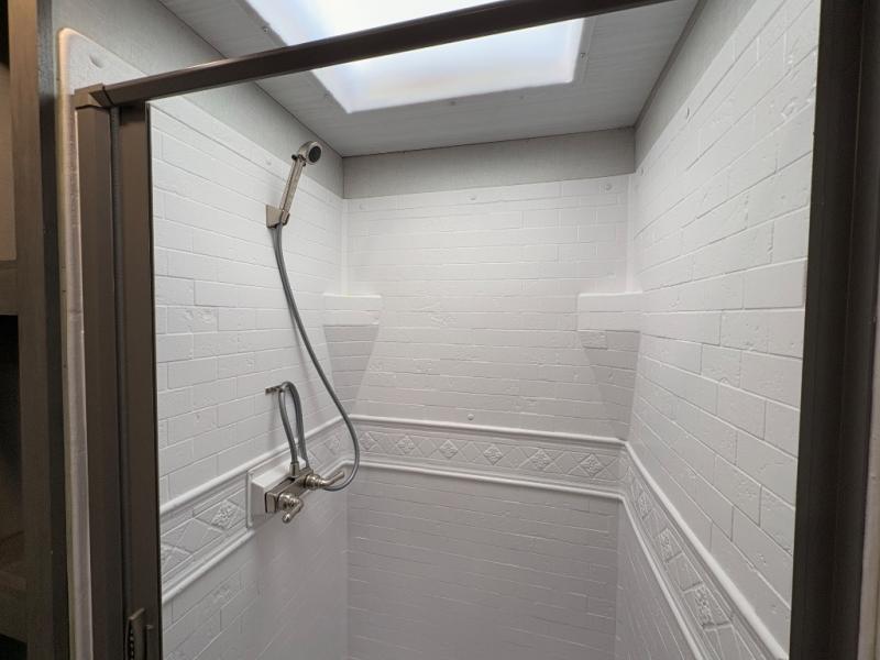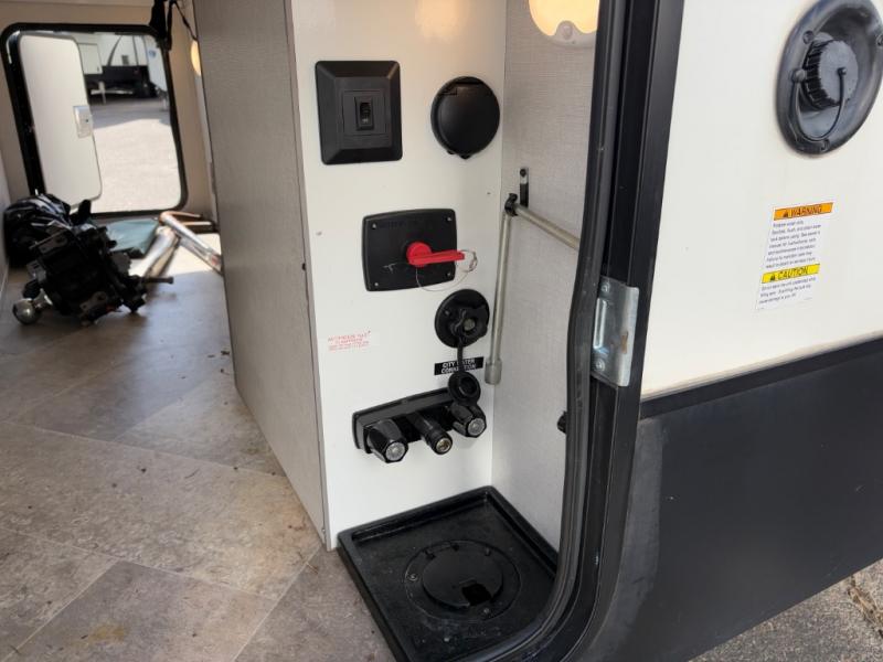 - Universal docking station with hookups for city water, satellite/cable, and outdoor shower