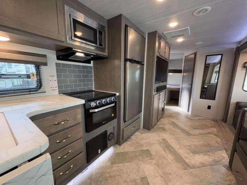 The EAST TO WEST Alta 2800KBH is designed with families in mind, offering sleeping for up to ten, double-size bunks, a king bed, and both indoor and outdoor kitchens. With modern residential finishes, abundant storage, and pet-friendly features, this travel trailer is ready for unforgettable adventures.