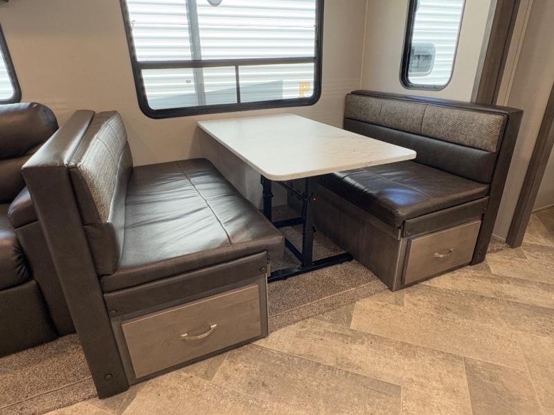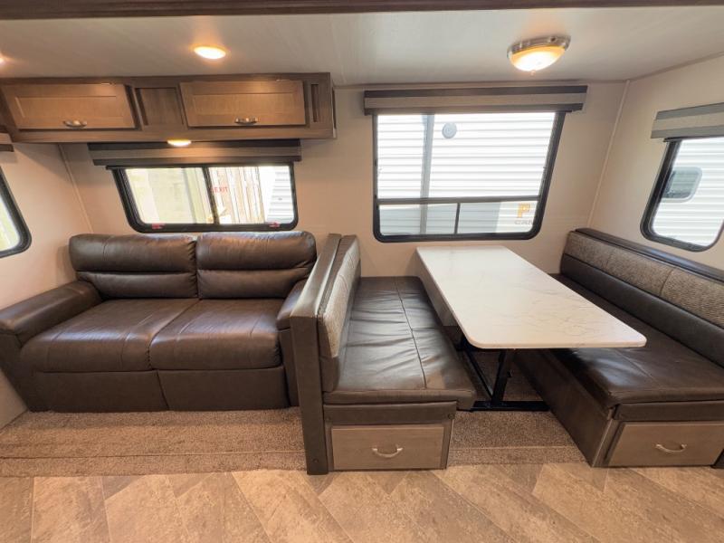 - Tri-fold sofa and booth dinette that convert into additional sleeping space