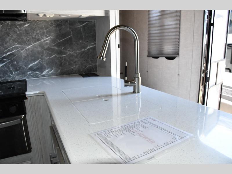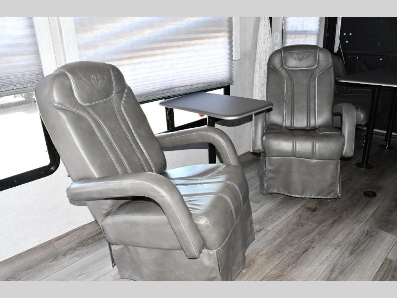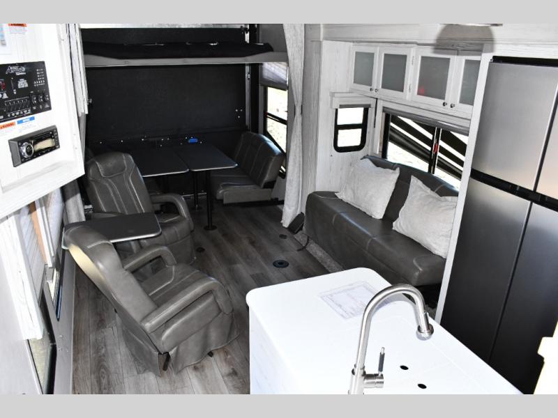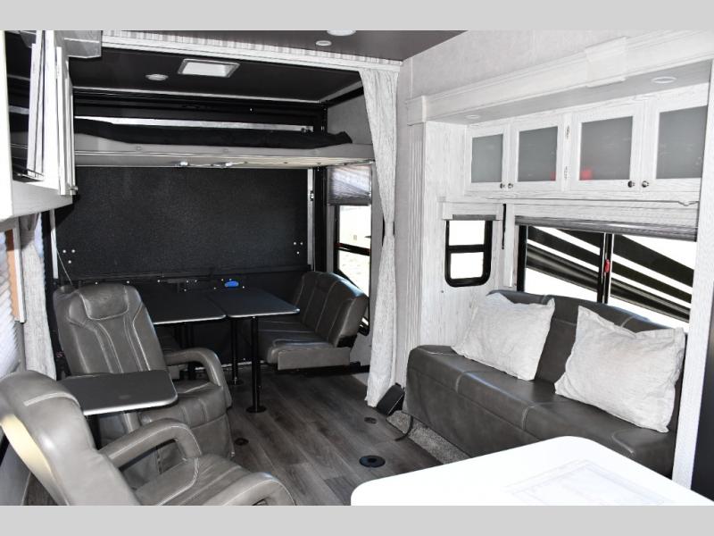 Kick back in style with plush recliners and a large 50" TV, making this toy hauler the perfect combination of thrill and chill.