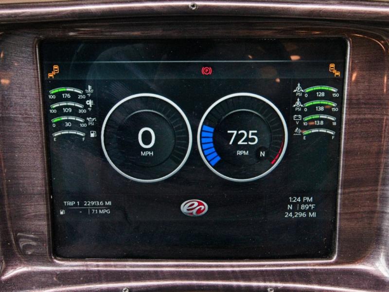 Unwind by the LED-lit fireplace, enjoy movie nights on the interior or exterior Smart TVs, and stretch out with two ottomans for added comfort. The master suite offers a Select Comfort Sleep Number king bed, USB-equipped nightstands, a vanity, dresser, and a 32" LED Smart HDTV. The rear full bath includes a cedar-lined wardrobe with motion lighting, washer/dryer, and a spacious shower, while the mid-coach half bath adds extra convenience.