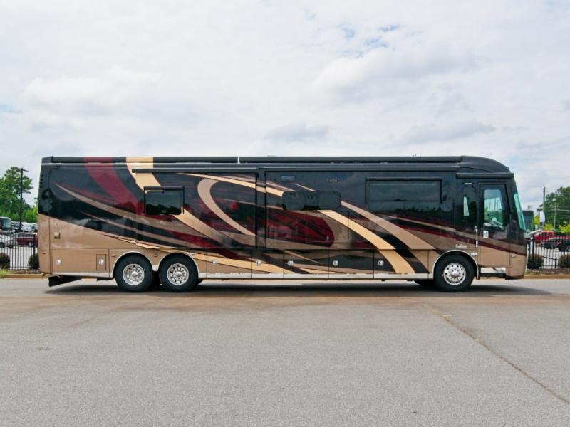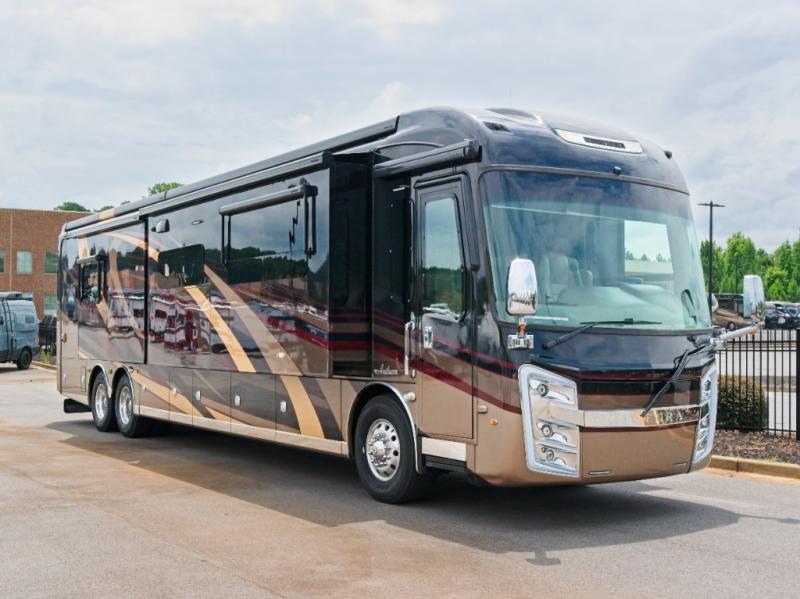 Experience luxury on the road with the Entegra Coach Anthem 44B, featuring a gourmet kitchen with induction cooking and a spacious bath and a half layout for ultimate comfort and convenience.