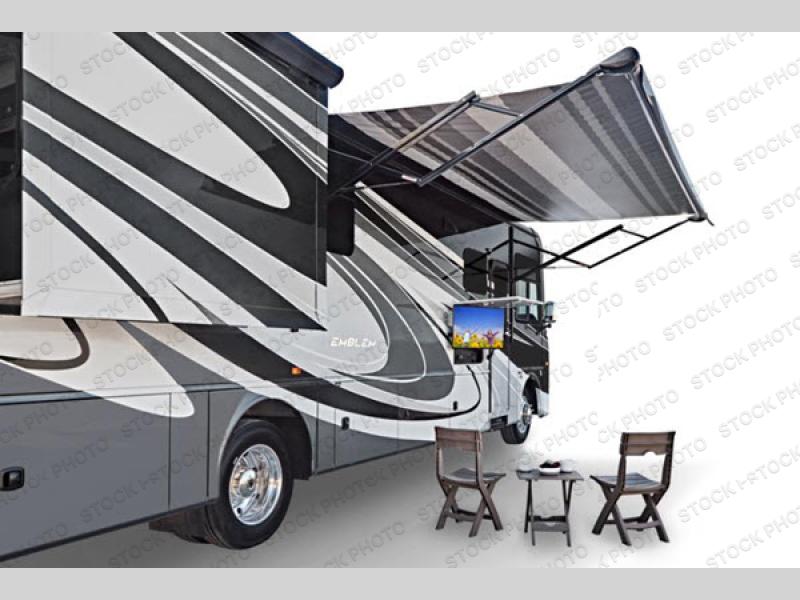 With each Emblem Class A gas motorhome by Entegra Coach you will enjoy luxury features, plenty of interior space, and eye-catching full-body paint options. The 6-speed automatic TorqShift transmission with overdrive and tow haul mode, along with the E-Z Drive Elite will ensure a smooth ride on every journey you take. You will appreciate the exterior utility center, the outside shower, and the electric-powered entrance steps for your convenience. These motorhomes feature a 120 in. panoramic windshield for a great view of the open road, and the Pioneer 8" infotainment center with Apple CarPlay and Android Auto will help navigate you to where you're going. You will love the Emblem's kitchen with its integrated stainless steel sink and covers and LED-lit solid surface countertops, plus a 21 cu. ft. residential refrigerator with ice and water in the door. These luxurious motorhome speak for themselves! Choose your favorite floorplan today.