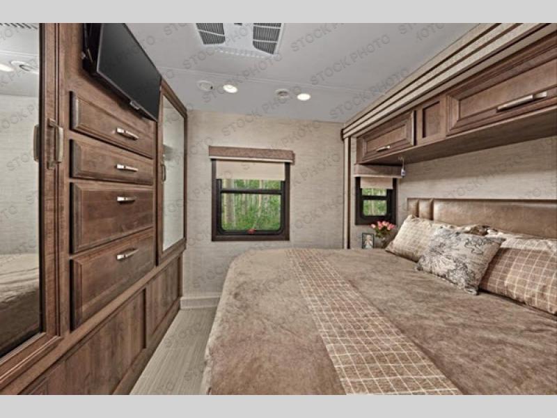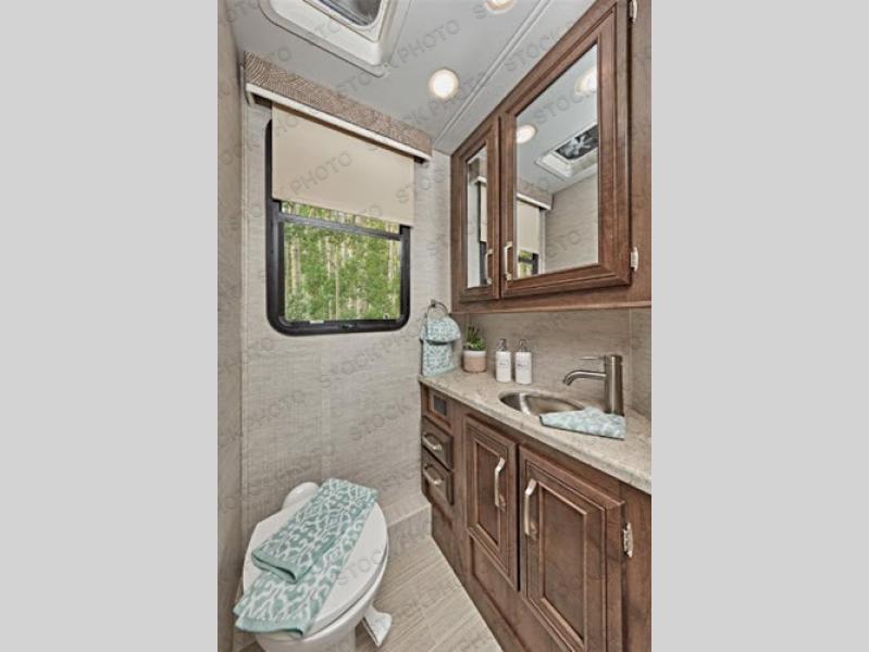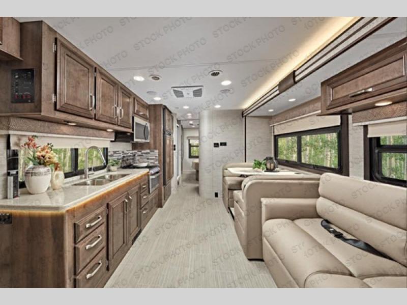 Entegra Coach Esteem Class C gas motorhome is equipped with E-Z Drive Elite offering a powerful blend of precise handling and renowned stability. The chassis also provides automatic hydraulic leveling jacks for easy setup, a tire pressure monitoring system for safety on the road, and a 7,500 lb. hitch for towing. The fully custom-molded ABS surround in the cab-over area with overhead bunk, the panoramic window for scenic views and the power shade when you have enough lighting, are all impressive features you will enjoy. The interior offers a 7-foot ceiling height, hardwood cabinet doors and drawers with ball-bearing drawer guides, blackout night roller shades, residential kitchen amenities, and much more! Get out and roam in your favorite Esteem today!