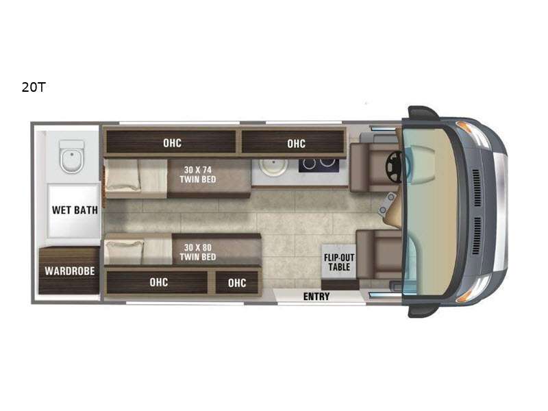You will want to get away as soon as you can get this Ethos Class B gas motorhome fueled up and packed up! Go anywhere and see everything with all of your essentials neatly tucked away in this 20' 11" coach. The kitchen has what you need and want with its two-burner cooktop, convection microwave, solid-surface countertop, stainless steel sink with glass cover, and pop-up 110V/USB outlet, and the cab area has been decked out with a 7" Pioneer infotainment center and ParkSense rear park assist system so that you can just enjoy the ride.