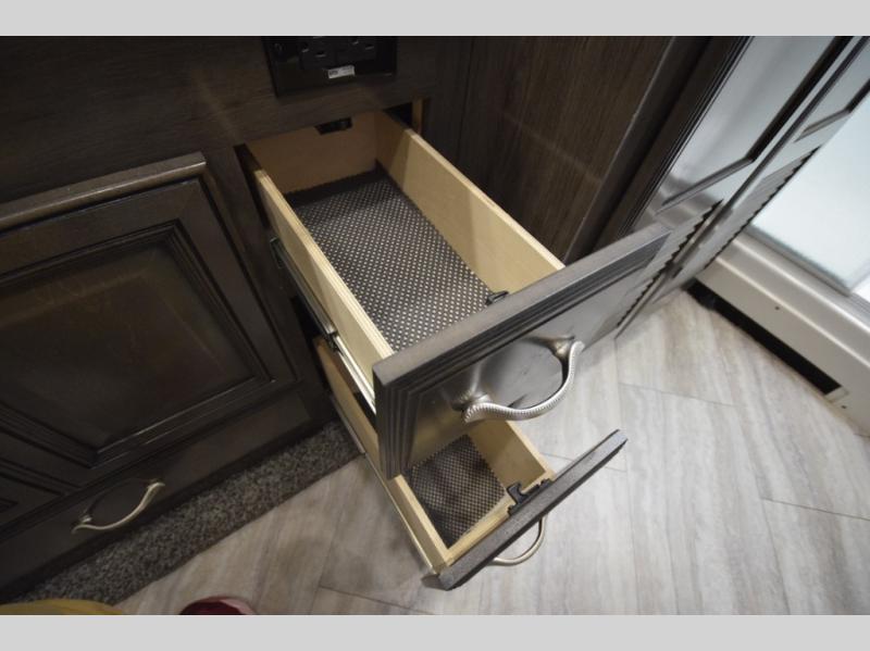 The exterior entertainment center includes a Bluetooth soundbar, making evenings under the stars unforgettable. Inside the cab, you’ll find high-tech touches like heated power mirrors, a 9" Sony stereo with navigation, and Android Auto/Apple CarPlay for seamless connectivity.