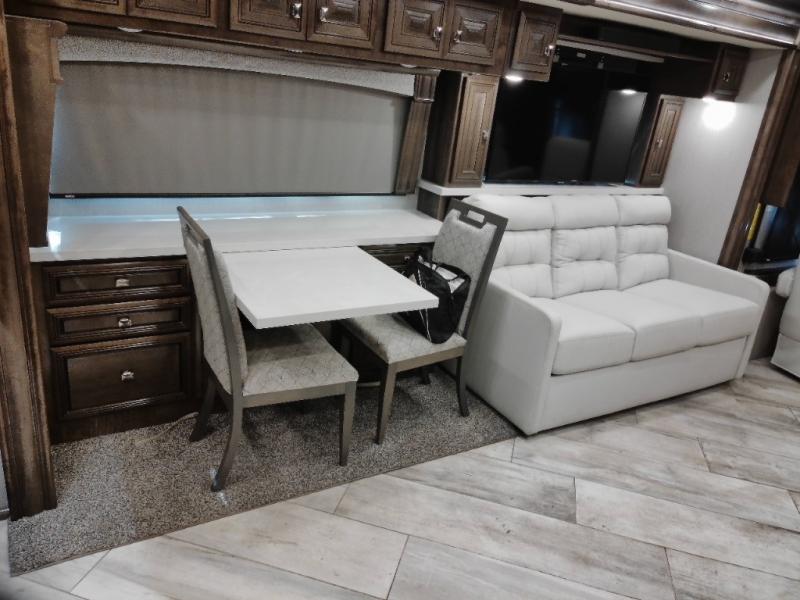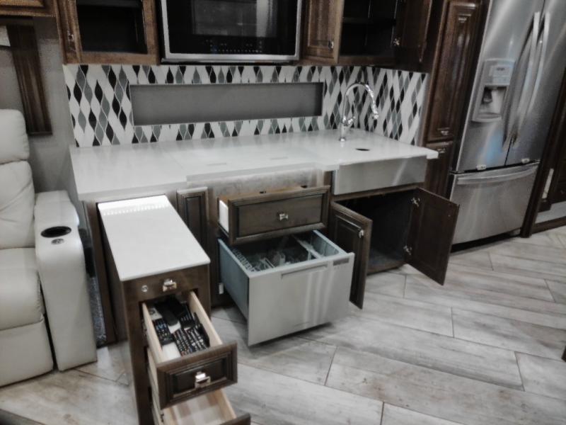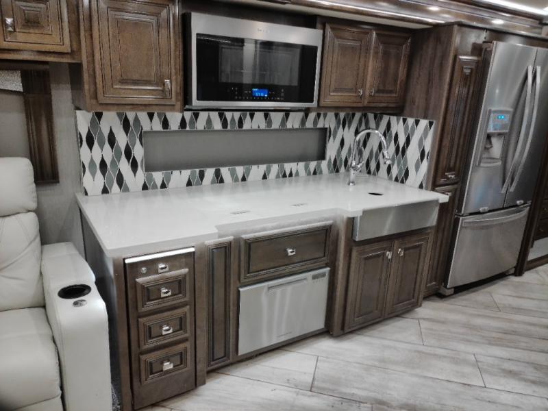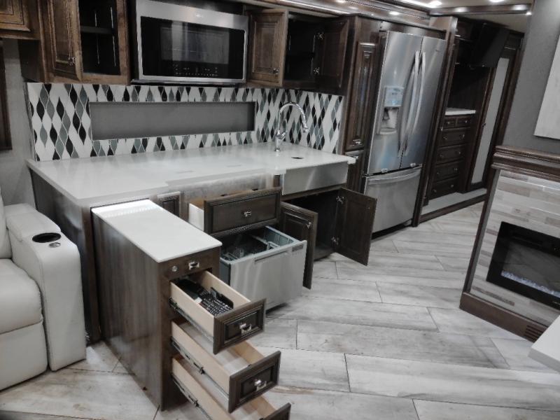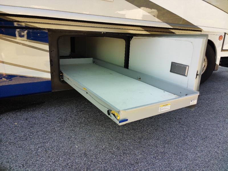 Each Discovery LXE Class A diesel coach by Fleetwood is built with Freedom Bridge chassis construction, a Cummins ISL9 diesel engine, plus an Allison 3000 Series transmission giving you the power you desire, and V-Ride or V-Ride with steerable tag depending on the coach you choose. You will find plenty of storage throughout the inside, and outside with the 90-degree full bay slide out tray, and the full-pass-through with LED lighting. Some of the highlights in the interior include a solid surface galley, lavy and nightstand tops, a glass tile backsplash, and porcelain tile floor with front heat, plus Apex residential style furniture. Why not travel with everything you want and so much more, make your selection today!