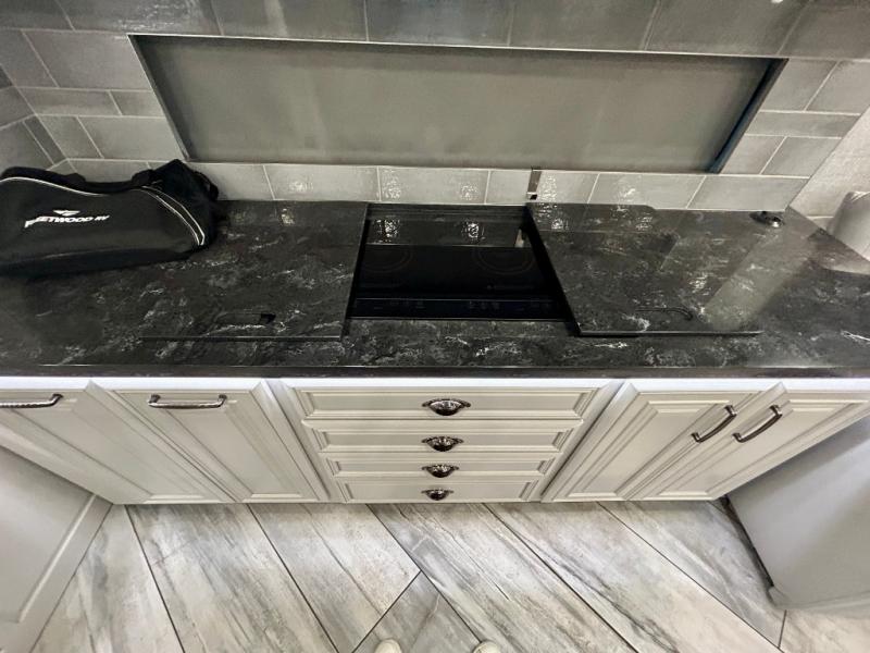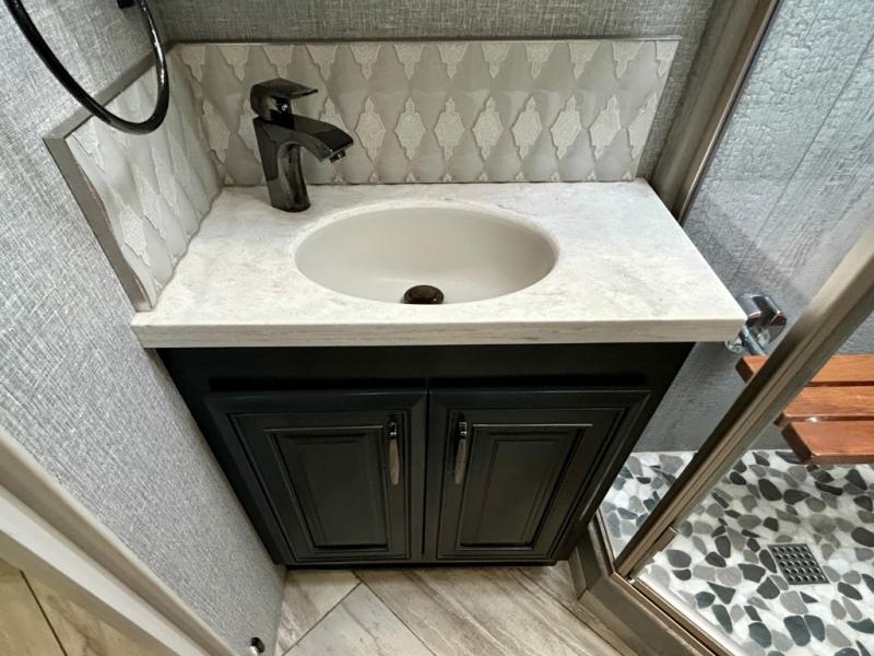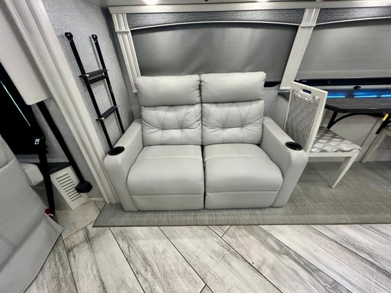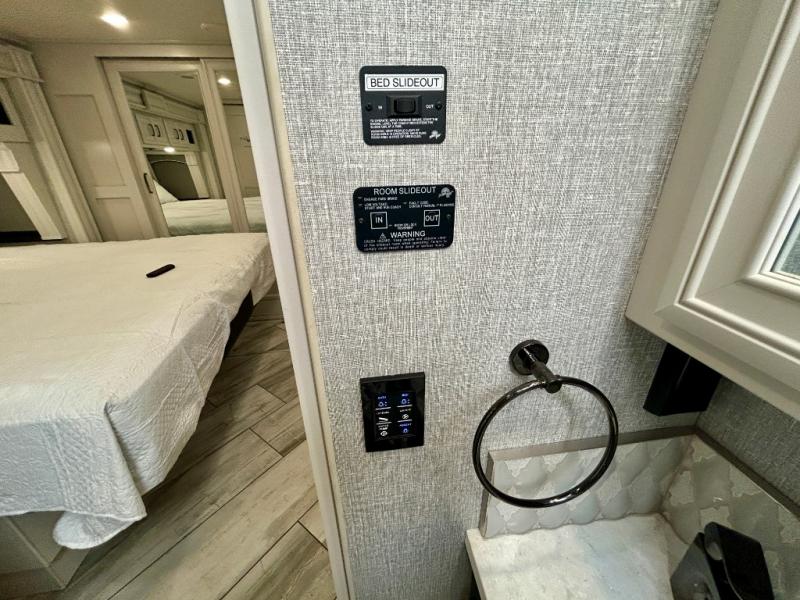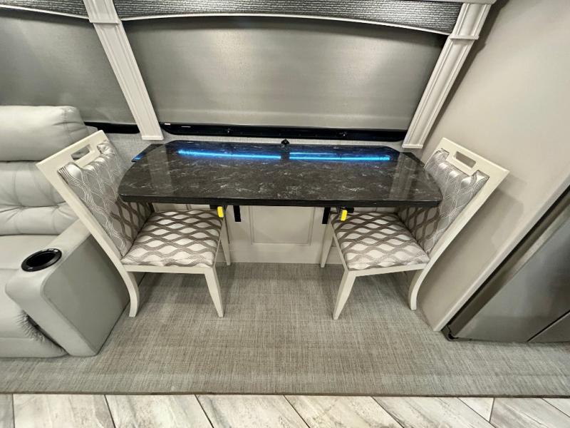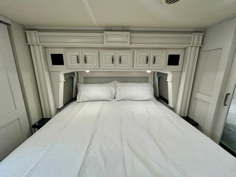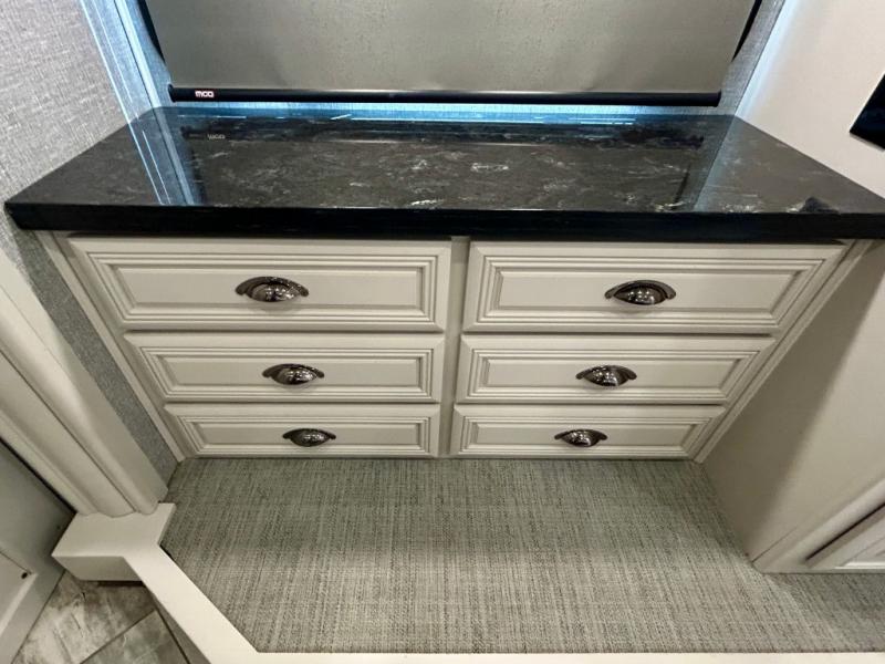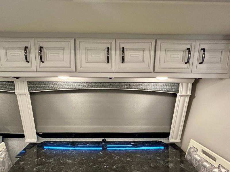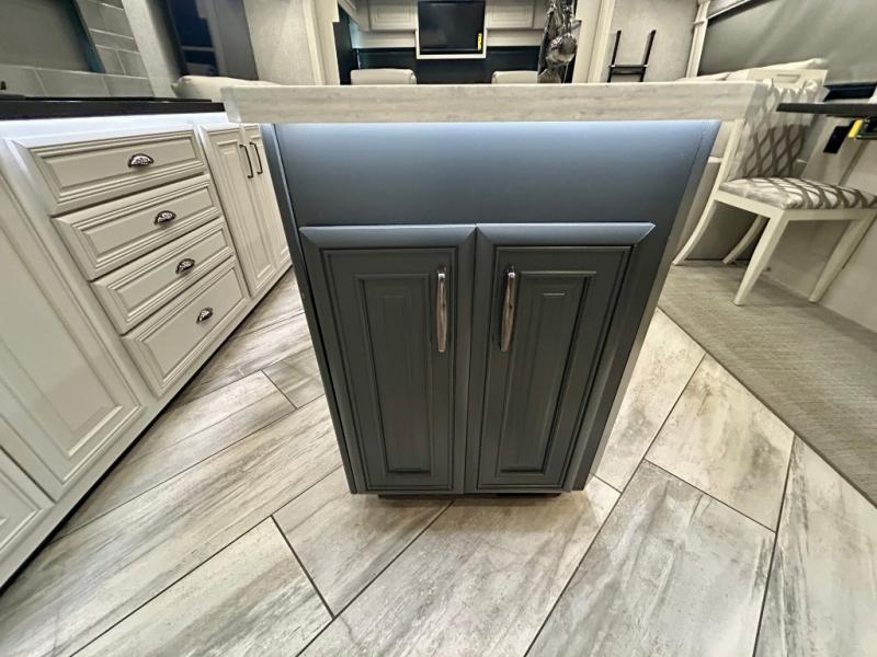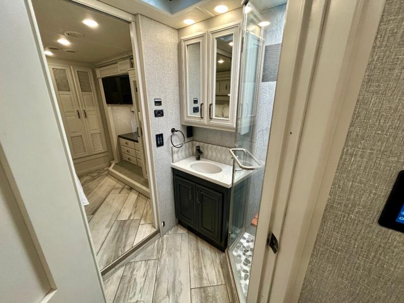 A couple or family can enjoy traveling to far away places or local RV resorts in this coach with residential features found throughout. The chef will love the kitchen with its residential refrigerator including ice and water dispenser in the door, the dishwasher near the sink on the island, and the convection microwave over the induction cooktop. You can dine at the adap"table" dinette that offers versatile seating to enjoy the panoramic window view and converts to a dinette table when more seating is needed, or while sitting on the 60" sofa with a drawer for storage or the 60" sofa sleeper with a pull-out twin bed. And there is plenty of inside entertainment with three TVs. The master bedroom includes a stackable washer/dryer to keep the linens clean, and a full-length wardrobe to keep your clothes wrinkle-free. You can also choose the optional 25th Anniversary Edition that comes with optional items such as, an exterior freezer, blind spot detection, the Technology Package, and more!