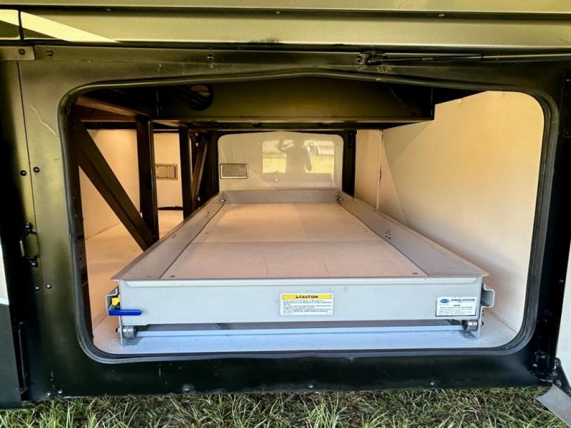 Each Discovery LXE Class A diesel coach by Fleetwood is built with Freedom Bridge chassis construction, a Cummins ISL9 diesel engine, plus an Allison 3000 Series transmission giving you the power you desire, and V-Ride or V-Ride with steerable tag depending on the coach you choose. You will find plenty of storage throughout the inside, and outside with the 90-degree full bay slide out tray, and the full-pass-through with LED lighting. Some of the highlights in the interior include a solid surface galley, lavy and nightstand tops, a glass tile backsplash, and porcelain tile floor with front heat, plus Apex residential style furniture. Why not travel with everything you want and so much more, make your selection today!