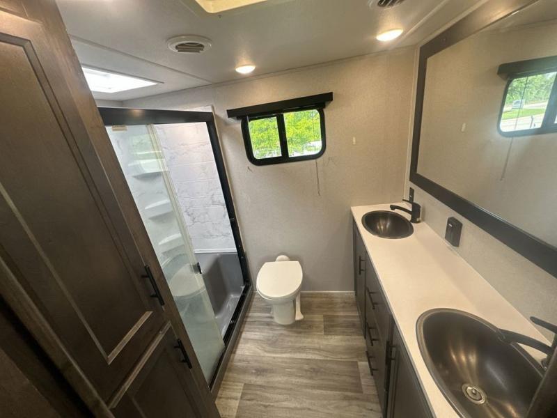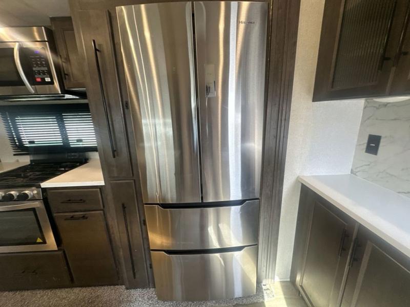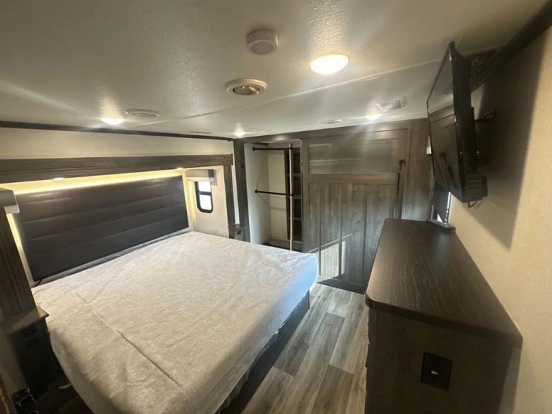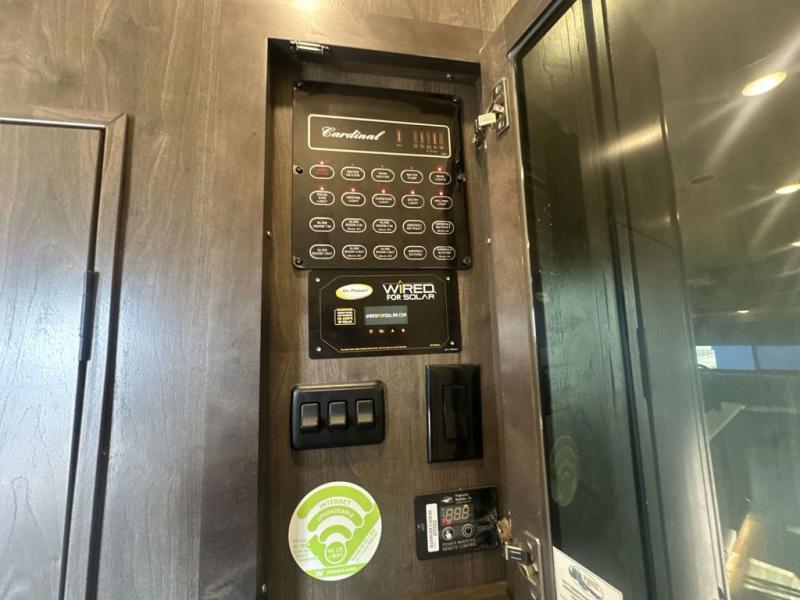The Forest River Cardinal Limited fifth wheel is a full-profile luxury unit that truly delivers in all aspects of its construction! The LCI Next Generation frame technology is a Z-frame construction that uses a 12" I-beam with 10" I-beam drop. The dual roof vents create a breathable attic, and the hydraulic slide system works effortlessly. The marine-grade exterior speakers are a useful party feature, and the underbelly armor will protect the unit from rigid road debris. On the interior, you'll find an immense amount of luxury with the preparations for a washer/dryer, the ceiling fan, the powered theater seating, and the electric fireplace. The interior also has excellent storage capabilities with the under-bed storage and walk-in closet in the bedroom.