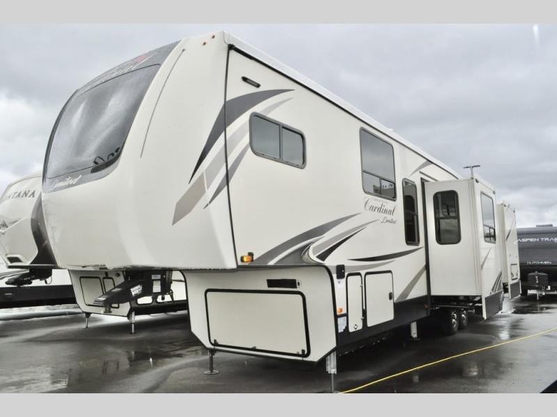 Every one of these Cardinal Limited fifth wheels by Forest River is ready for whatever adventure you crave to go on whether it is an extended stay, a weekend getaway, or even road tripping across the country! They are equipped with affordable luxuries like the six point hydraulic auto-leveling system, the Z-frame pass-through storage, and the Whisper Quiet air conditioners. These models are built with an I-beam "Z" frame powder coated chassis drop frame, a high-gloss premium oyster fiberglass exterior, and a PEX plumbing system so you can be sure to have years of fun with one. There are also three packages loaded with extra features you are going to love having too. So, come choose the best one for you!
