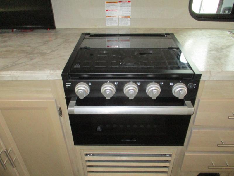 Love to cook while you travel? The Catalina Expedition is equipped with a modern kitchen that features a three-burner stove, microwave, and a large refrigerator, perfect for storing everything from fresh ingredients to your favorite snacks. The counter space and storage make meal prep a breeze, allowing you to create delicious meals on the go. Whether you’re making a quick breakfast before hitting the road or preparing a full dinner after a day of exploring, this kitchen has you covered.