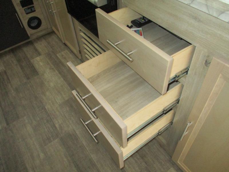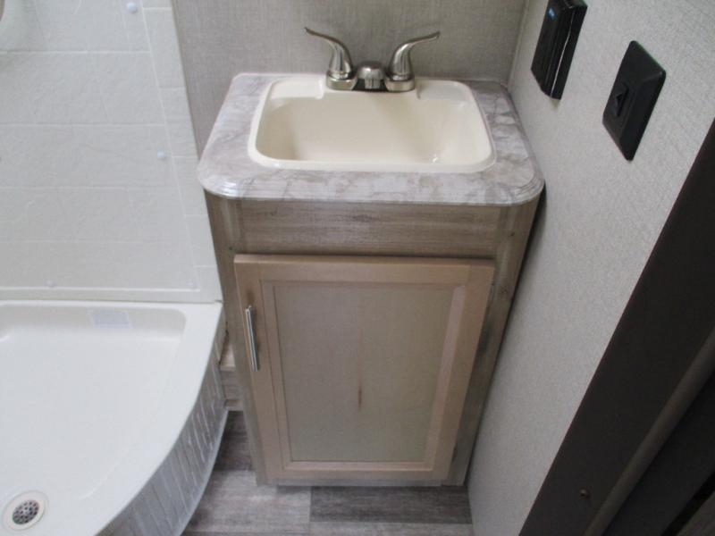 The bathroom in the Catalina Expedition is more than just functional—it's designed for comfort. With a spacious shower, toilet, and vanity with plenty of storage, you’ll have all the amenities you need for a comfortable and refreshing experience after a day of exploring. No need to compromise on convenience when you’re on the road with this well-appointed bathroom.