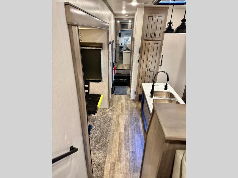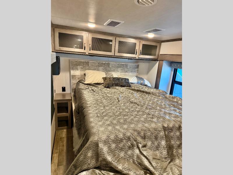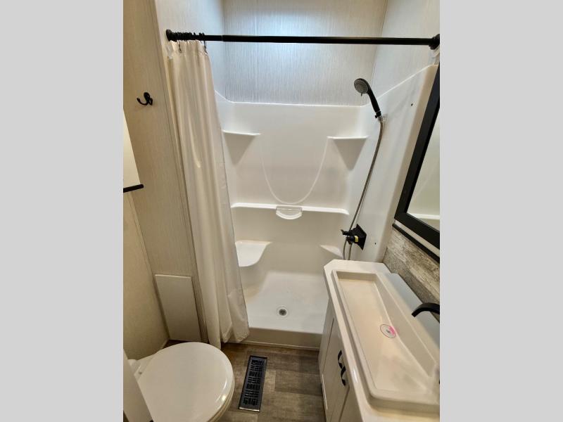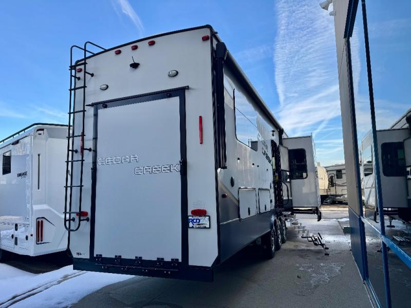 See where the road leads with any one of these Forest River Cedar Creek fifth wheels! They are constructed with the famous Cedar Creek all-aluminum superstructure on 16" centers, a "True" gelcoat exterior, and Silaprene® bonded sidewalls that are resilient, grow stronger with age, and also have an outstanding resistance to UV, heat, cold, moisture, oil/gas, and highway chemicals. The Dexter Performance and Safety Package will give you a peace of mind while driving down the road. You can also bring your furry friend with the animal leash latch, and enjoy your privacy with the Hehr frameless, tinted automotive-style windows. A few other convenient features you are sure to love are the Intervac central vacuum system with a front storage compartment port and interior automatic dustpan, the Congoleum® flooring (carpet mandatory in dining slide), and the USB plug-ins on each side of the king bed. Come choose the model that best suits you today!