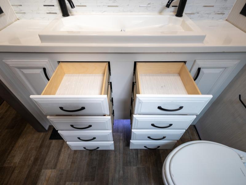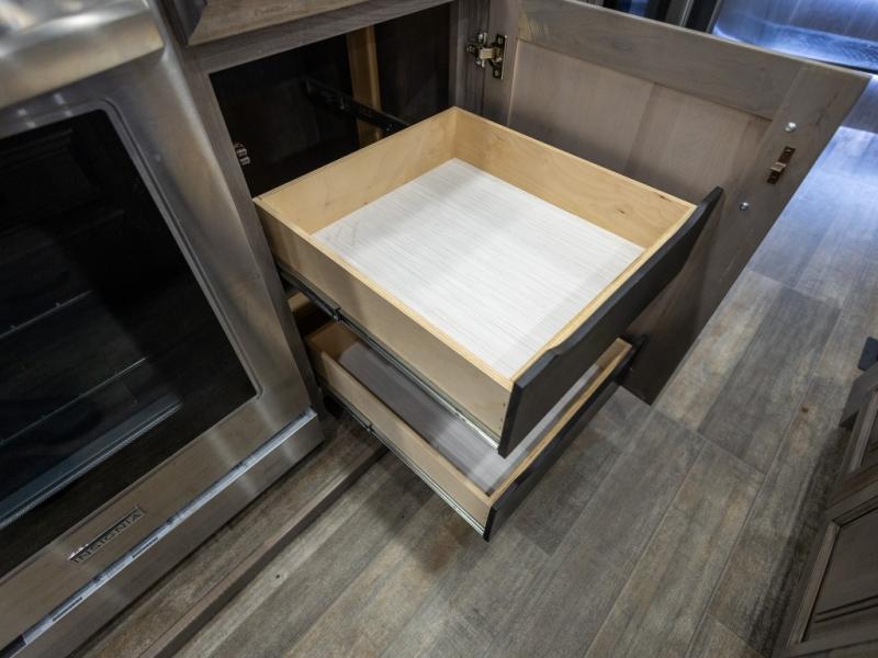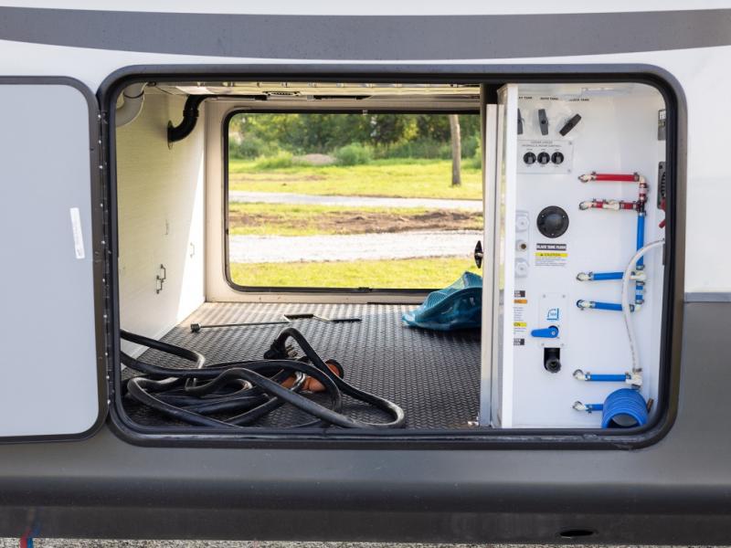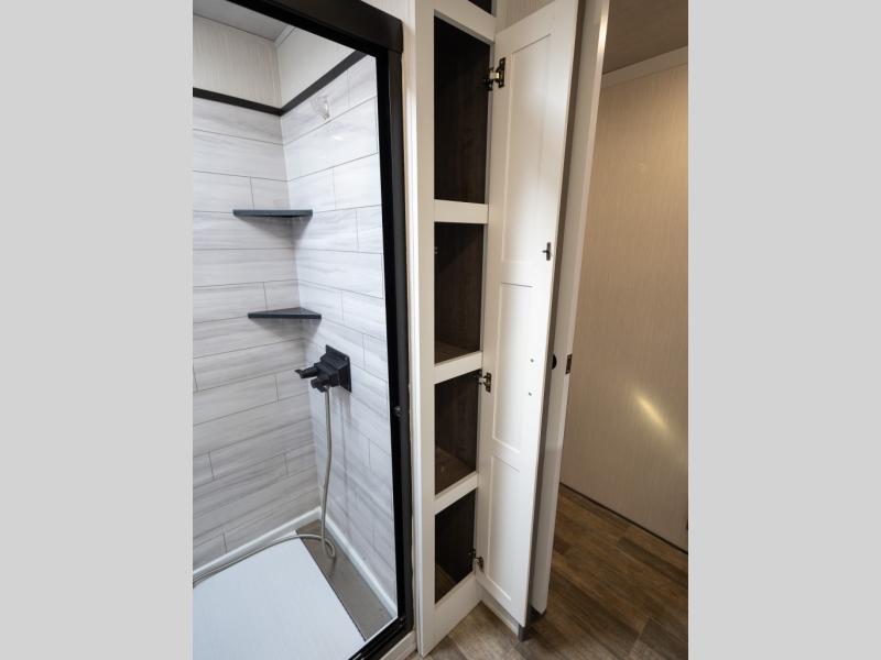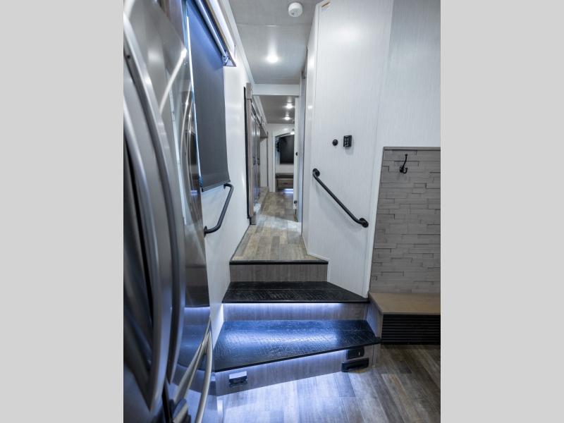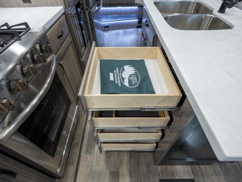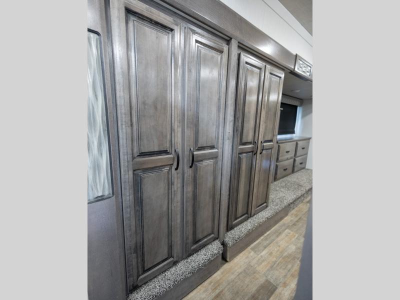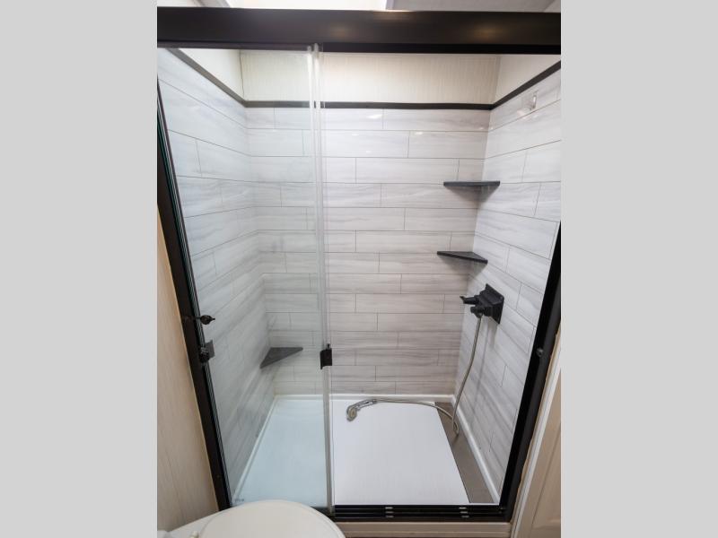 With any Cedar Creek Champagne Edition fifth wheel by Forest River you can extend your stay during any climate and where ever you decide to set up! Each is built with an all aluminum super structure, 100% aluminum framed windows and baggage doors, large surface 12V heating pads on all tanks, the Dexter Safety and Performance package, plus the Standard Level-Up 6-point hydraulic leveling system. The fifth wheels are powered by Firefly Integrations with advanced electrical automation, and includes the King WiFi router/range extender, the Truma AquaGo instant water heater for constant, endless supply of hot water, and a heated front storage compartment. Inside you will find luxury and convenience throughout with features like Ashley Grey high sheen maple cabinet doors and drawers with hidden hinges, the Champagne LED lighting package, Intra-Vac central vacuum system with front storage port, two Whisper Quiet, ducted air conditioners with dual zone control and cold air returns, and residential appliances to mention a few.