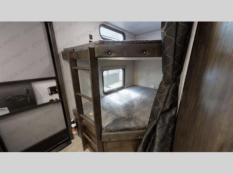 This Cherokee travel trailer can certainly house a bunch of campers looking for a fun weekend getaway! With double-size bunks and a queen-size bed, plus a sofa and a U-shaped dinette, you will have easy sleeping for ten. So gather the family and a few extra friends and head out for a great time to explore, relax, and just simply enjoy. You will find the large slide out provides a nice amount of space in the main living/dining area, and the private bedroom features its own exterior entrance door. You will also find that this unit provides loads of storage for your gear and necessities both inside and out!