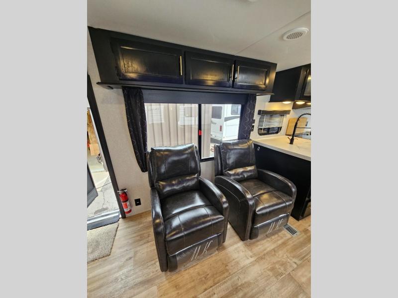 What I liked most: Nice layout. Nice kitchen. Really liked the pantry. Took out one of the recliners and put in a small side table. For a camper. Very nice.