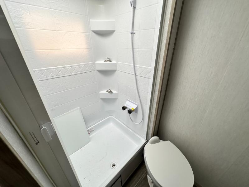 This travel trailer is perfect for a couple that wants to get out and tour the country! There is an abundance of storage inside and out with the two kitchen pantries, the overhead cabinets, and the exterior full pass-through storage area. The oversized rear bathroom comes with a porcelain stool with water jet assist, a powered attic fan, a shower/tub with a skylight above, an oversize lav sink, and a linen closet to keep your towels close. You will enjoy your meals in true relaxation while sitting at the home theatre seating which has heated massage and removable dinner trays directly across from the electric fireplace. This model offers a modern spin on camping with a farm style sink, dual barn style doors, and the deluxe bedding package. The exterior includes refinements like an oversized 18' awning, a deluxe outside kitchen, and the Alpha step above entry step!