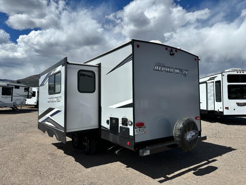 You will be one happy camper with any one of these Forest River Cherokee Alpha Wolf travel trailers! You will not only find top shelf amenities, but also a tougher, lighter, and better insulated shell with the engineered wood SuperTruss roof structure with 3/8" fully walkable decking. The LED interior and exterior lighting packages make it possible to see whether day or night, and the unobstructed pass-through storage area lets you easily access your camping gear. A few other features you will love having are the aluminum rims with tire pressure monitors, the Alpha bath fixtures, the power tongue jack, and the super-plush Evergreen mattress with a deluxe bedding package. You won't be disappointed with any one of these travel trailers!