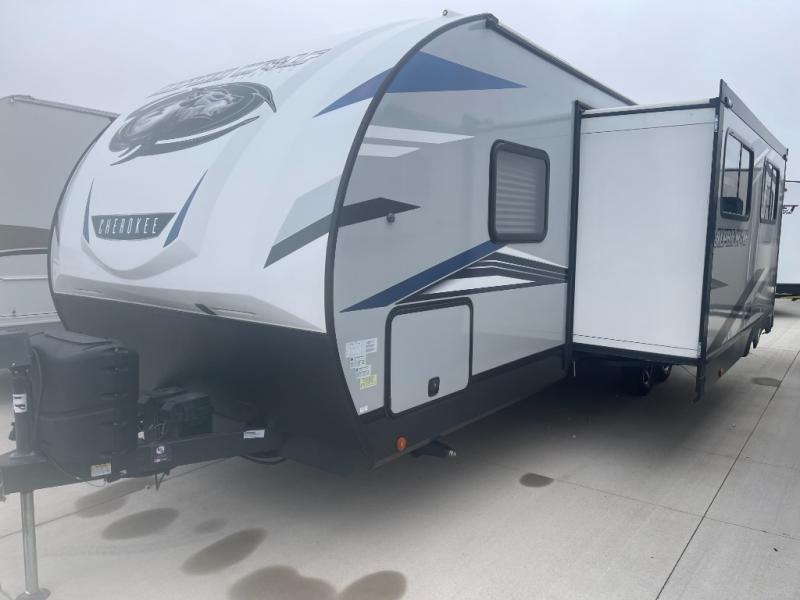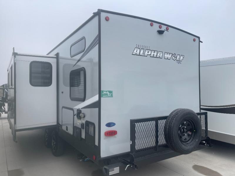 You will be one happy camper with any one of these Forest River Cherokee Alpha Wolf travel trailers! You will not only find top shelf amenities, but also a tougher, lighter, and better insulated shell with the engineered wood SuperTruss roof structure with 3/8" fully walkable decking. The LED interior and exterior lighting packages make it possible to see whether day or night, and the unobstructed pass-through storage area lets you easily access your camping gear. A few other features you will love having are the aluminum rims with tire pressure monitors, the Alpha bath fixtures, the power tongue jack, and the super-plush Evergreen mattress with a deluxe bedding package. You won't be disappointed with any one of these travel trailers!