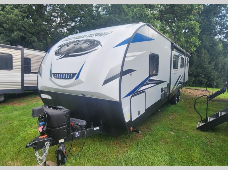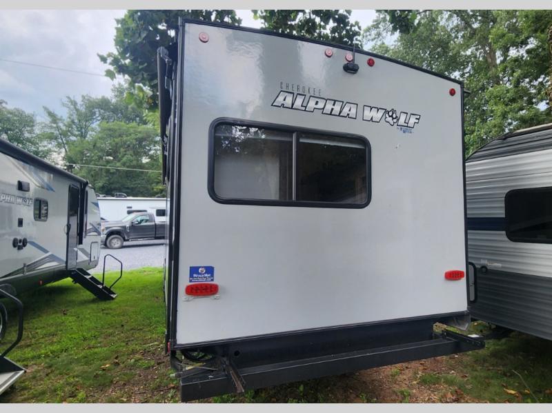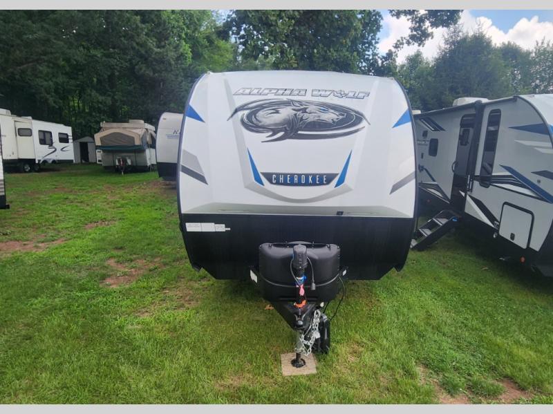 You will be one happy camper with any one of these Forest River Cherokee Alpha Wolf travel trailers! You will not only find top shelf amenities, but also a tougher, lighter, and better insulated shell with the engineered wood SuperTruss roof structure with 3/8" fully walkable decking. The LED interior and exterior lighting packages make it possible to see whether day or night, and the unobstructed pass-through storage area lets you easily access your camping gear. A few other features you will love having are the aluminum rims with tire pressure monitors, the Alpha bath fixtures, the power tongue jack, and the super-plush Evergreen mattress with a deluxe bedding package. You won't be disappointed with any one of these travel trailers!