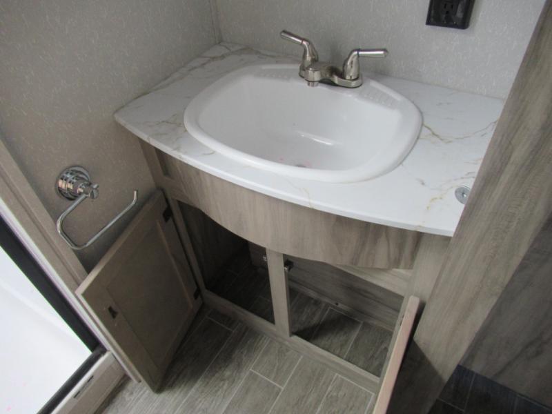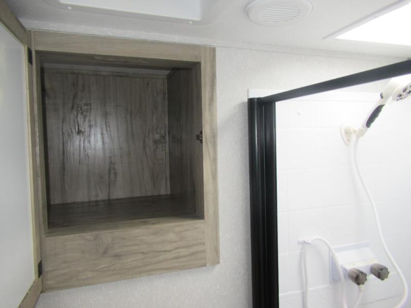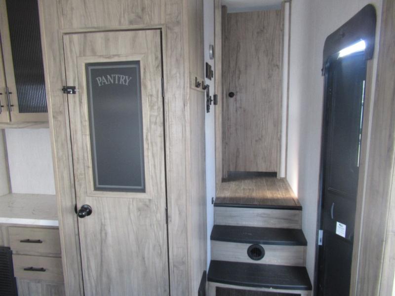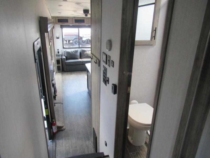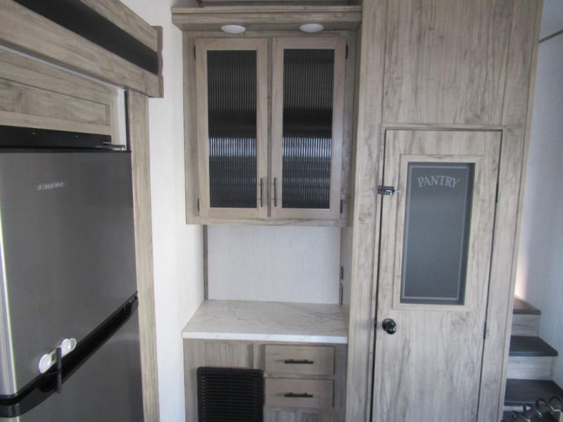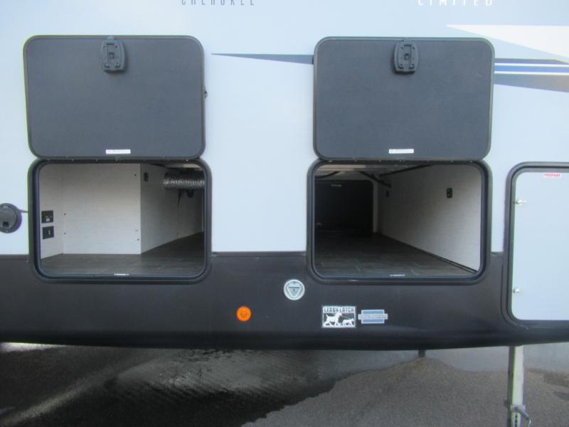 Find out what you've been missing with any one of these Forest River Cherokee Arctic Wolf Suite fifth wheels! Each model is constructed with 5/8" tongue and groove plywood floor decking, 1x engineered wood "SuperTruss" roof structure, and a "ToughBend" rigid skirt metal design for a durable fifth wheel made to last. The large exterior folding entry assist grab handle at all entries makes entering easier than ever, and the motion sensor lights in the pass-through storage will allow you to unpack quickly. These fifth wheels include a dual zone Bluetooth stereo optimized for USB flash, drives, iPODs, and other MP3 players so you can listen to your favorite tunes, and there is outside TV prep in the pass-through if you enjoy watching movies outdoors.