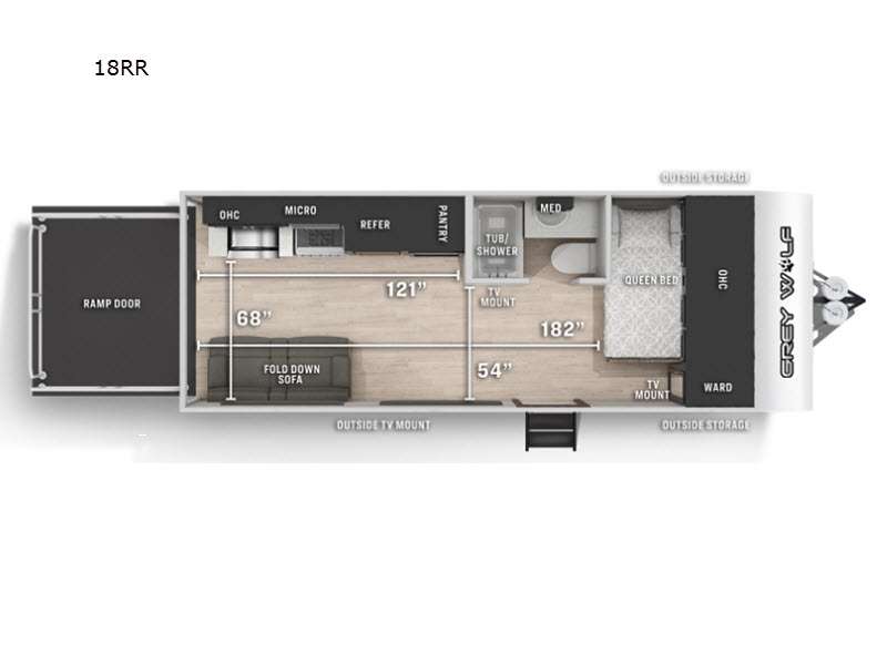Whether it's a journey that will take you to new locations or a tried-and-true getaway to that favorite and memorable destination, the Forest River Cherokee Grey Wolf travel trailers and toy haulers are going to make the trip worth it every single time! You can travel in confidence with the premium wheel package, seamless roofing membrane with heat reflectivity, Power Gear frame technology with space-saver rail design, and Cherokee back-up camera system. The Cherokee Grey Wolf's interior is highly attractive with its stainless steel kitchen suite package, premium bedding ensemble and comforter, and 8" ceiling-mounted subwoofer with accent lighting. You will also find a black waste tank flush-out kit, an outside shower with hot and cold water, an armored underbelly tank enclosure, a power tongue jack, and an RV grill quick connect.