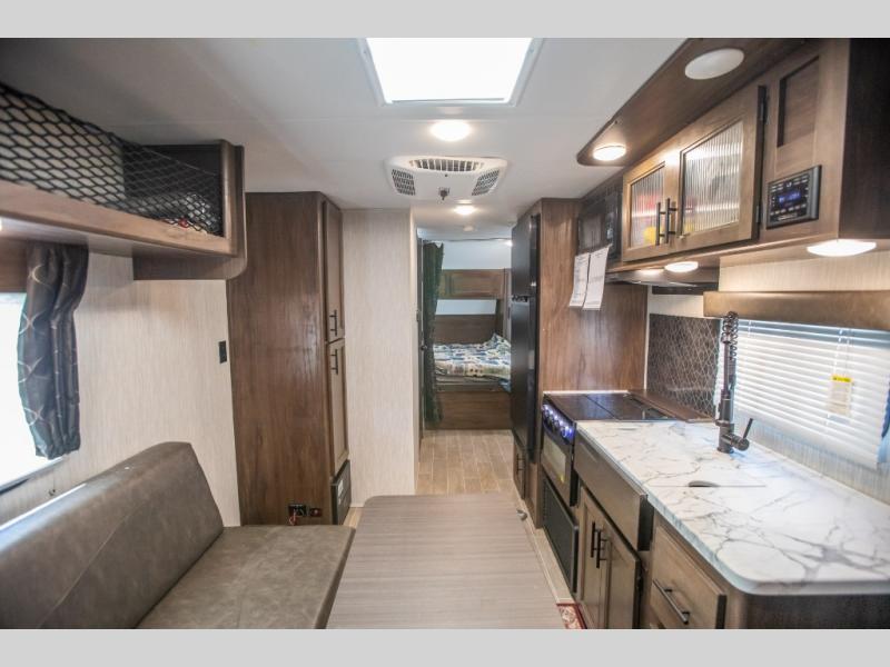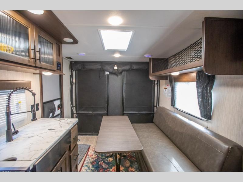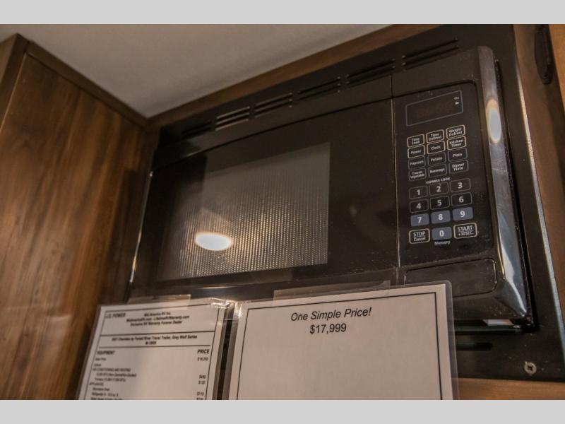 All Forest River Cherokee Grey Wolf models are quality built with distinct features and superior comfort in mind, and they are all set at an affordable price point. So, when you get the opportunity to escape the hustle and bustle of everyday life to enjoy all the beauty and wonder that an outdoor adventure holds, the Cherokee Grey Wolf is ready and waiting to help you relax and unwind. Each unit features an outdoor shower with hot and cold water for you to get cleaned up without tracking mud throughout after your adventurous hike, and with the RVQ quick connect, you can easily hook up a low-pressure grill to cook up your best burgers outdoors. Inside, you will enjoy the HDMI entertainment center, the LED lighting throughout, and a kitchen skylight with a shade, and if you get tired of being indoors during inclement weather, the outdoor power awning will provide protection.