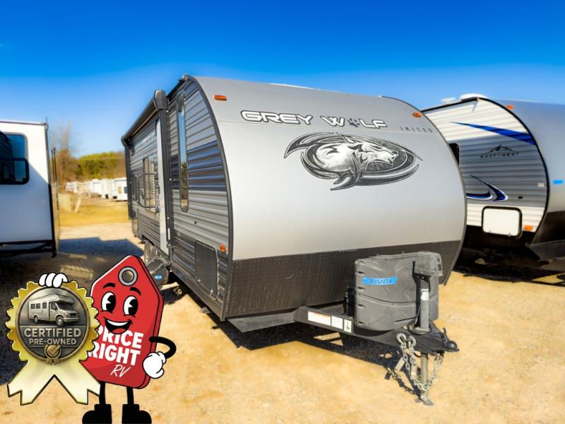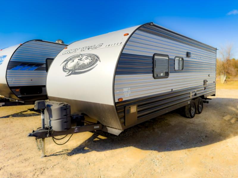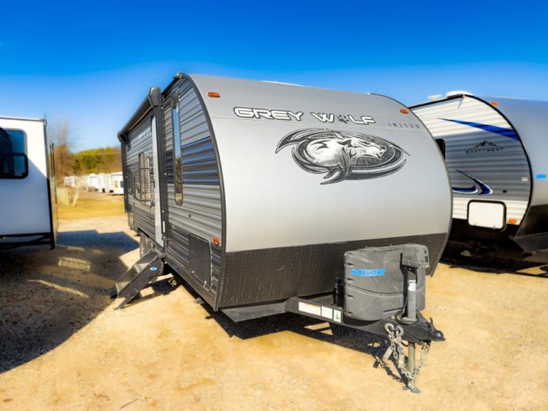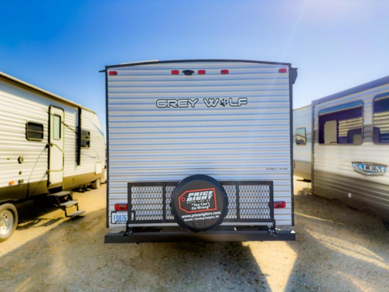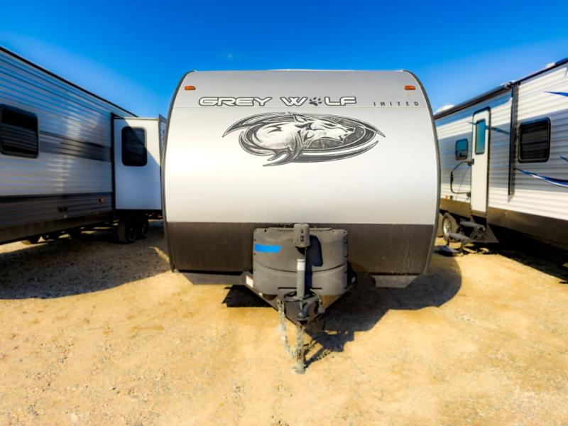 Whether it's a journey that will take you to new locations or a tried-and-true getaway to that favorite and memorable destination, the Forest River Cherokee Grey Wolf travel trailers and toy haulers are going to make the trip worth it every single time! You can travel in confidence with the premium wheel package, seamless roofing membrane with heat reflectivity, Power Gear frame technology with space-saver rail design, and Cherokee back-up camera system. The Cherokee Grey Wolf's interior is highly attractive with its stainless steel kitchen suite package, premium bedding ensemble and comforter, and 8" ceiling-mounted subwoofer with accent lighting. You will also find a black waste tank flush-out kit, an outside shower with hot and cold water, an armored underbelly tank enclosure, a power tongue jack, and an RV grill quick connect.