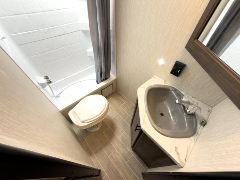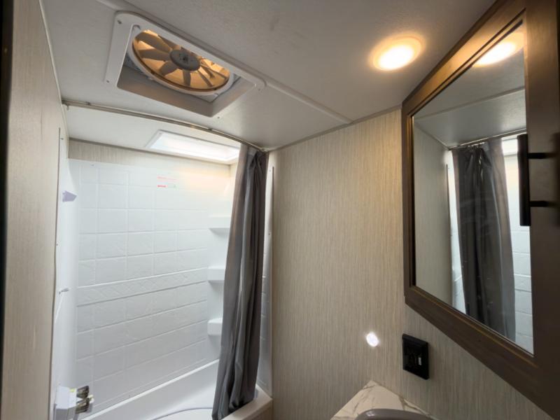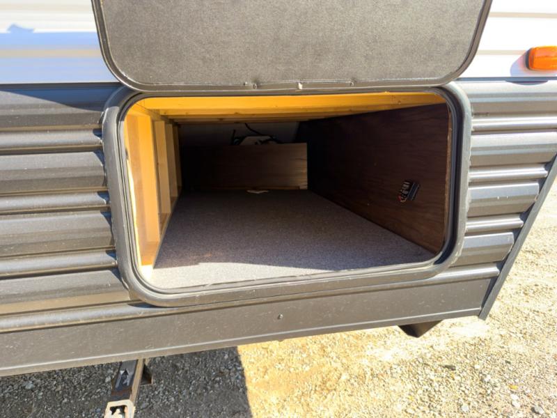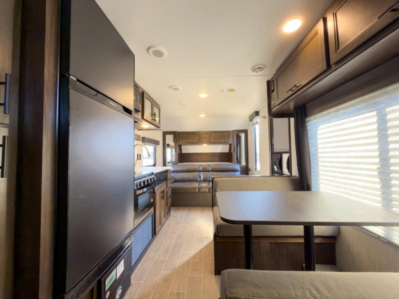 With this Cherokee Grey Wolf travel trailer, there are a set of double-size bunks that your kiddos are sure to love, and you will love having your own Cherokee Sleep System bed. The bed can be easily folded up to give you a full sofa. The location of the full bathroom in the back next to the bunk beds offers even more convenience, especially at night. This unit will give your larger family a great camping experience. You will find ample storage both inside and out with large overhead cabinets inside and wardrobes on either side of the front bed. On the outside, there are storage compartments for your exterior camping gear in both the front and rear making it easy to stow away outdoor camp chairs and games that you can enjoy while hanging out under the 15' power awning.