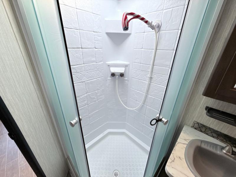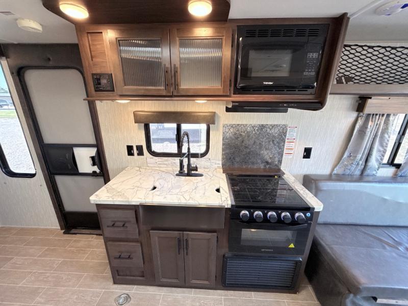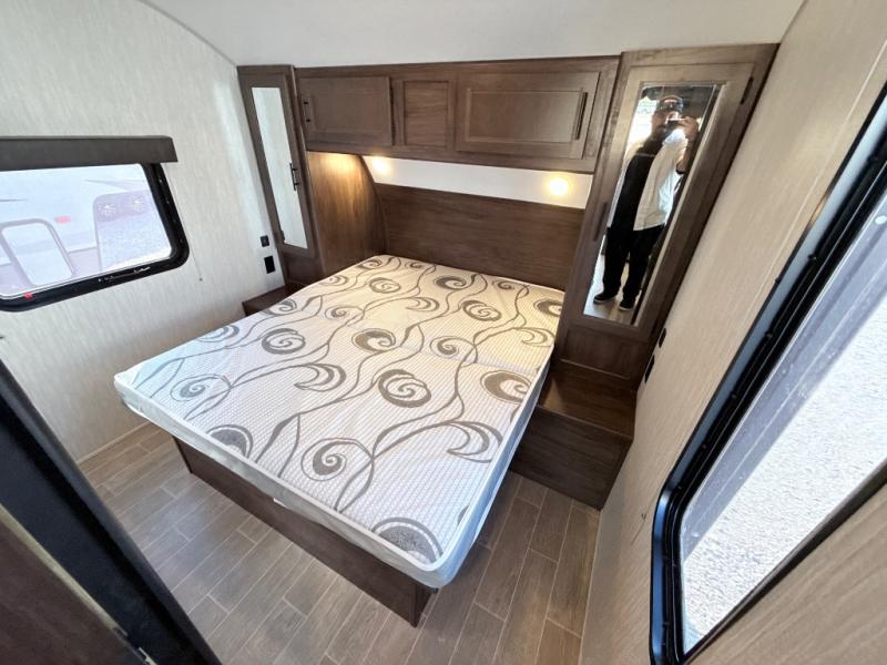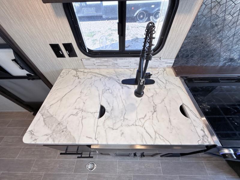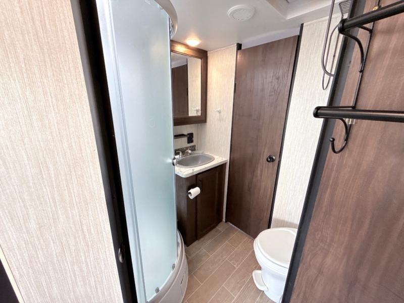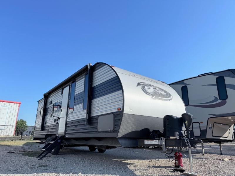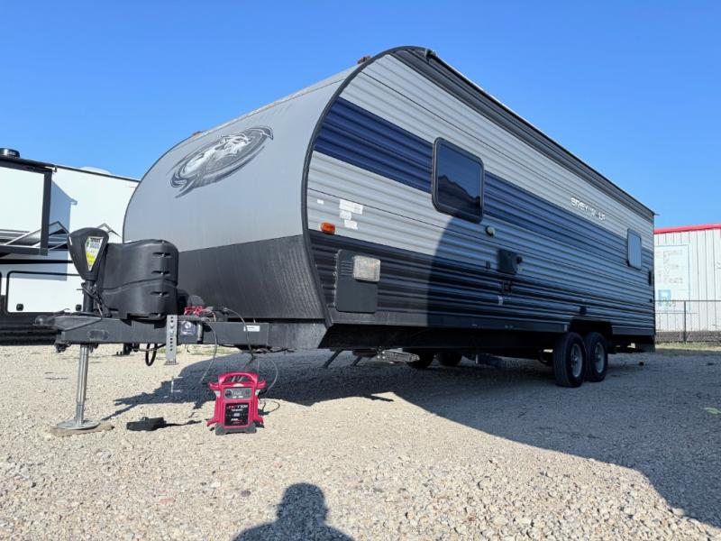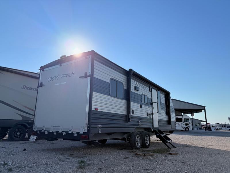 Whether it's a journey that will take you to new locations or a tried-and-true getaway to that favorite and memorable destination, the Forest River Cherokee Grey Wolf travel trailers and toy haulers are going to make the trip worth it every single time! You can travel in confidence with the premium wheel package, seamless roofing membrane with heat reflectivity, Power Gear frame technology with space-saver rail design, and Cherokee back-up camera system. The Cherokee Grey Wolf's interior is highly attractive with its stainless steel kitchen suite package, premium bedding ensemble and comforter, and 8" ceiling-mounted subwoofer with accent lighting. You will also find a black waste tank flush-out kit, an outside shower with hot and cold water, an armored underbelly tank enclosure, a power tongue jack, and an RV grill quick connect.