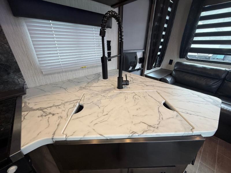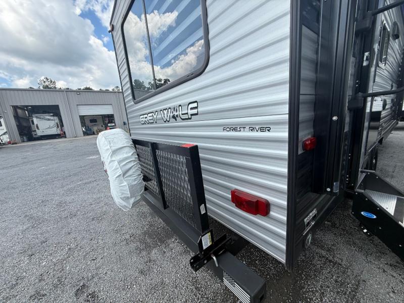 Whether it's a journey that will take you to new locations or a tried-and-true getaway to that favorite and memorable destination, the Forest River Cherokee Grey Wolf travel trailers and toy haulers are going to make the trip worth it every single time! You can travel in confidence with the premium wheel package, seamless roofing membrane with heat reflectivity, Power Gear frame technology with space-saver rail design, and Cherokee back-up camera system. The Cherokee Grey Wolf's interior is highly attractive with its stainless steel kitchen suite package, premium bedding ensemble and comforter, and 8" ceiling-mounted subwoofer with accent lighting. You will also find a black waste tank flush-out kit, an outside shower with hot and cold water, an armored underbelly tank enclosure, a power tongue jack, and an RV grill quick connect.