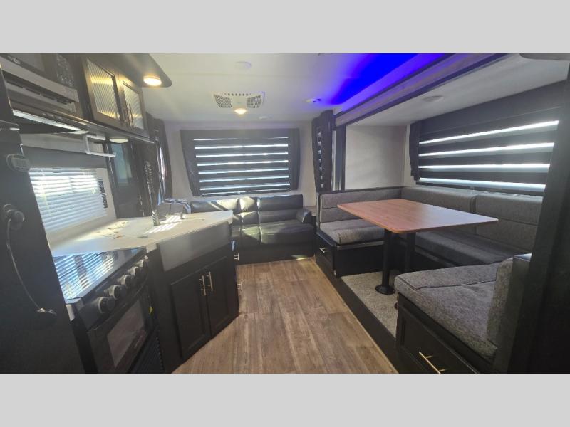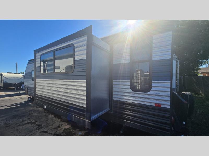 All Forest River Cherokee Grey Wolf models are quality built with distinct features and superior comfort in mind, and they are all set at an affordable price point. So, when you get the opportunity to escape the hustle and bustle of everyday life to enjoy all the beauty and wonder that an outdoor adventure holds, the Cherokee Grey Wolf is ready and waiting to help you relax and unwind. Each unit features an outdoor shower with hot and cold water for you to get cleaned up without tracking mud throughout after your adventurous hike, and with the RVQ quick connect, you can easily hook up a low-pressure grill to cook up your best burgers outdoors. Inside, you will enjoy the HDMI entertainment center, the LED lighting throughout, and a kitchen skylight with a shade, and if you get tired of being indoors during inclement weather, the outdoor power awning will provide protection.