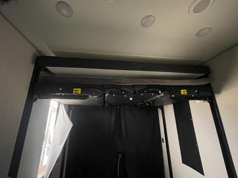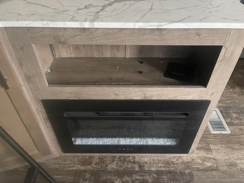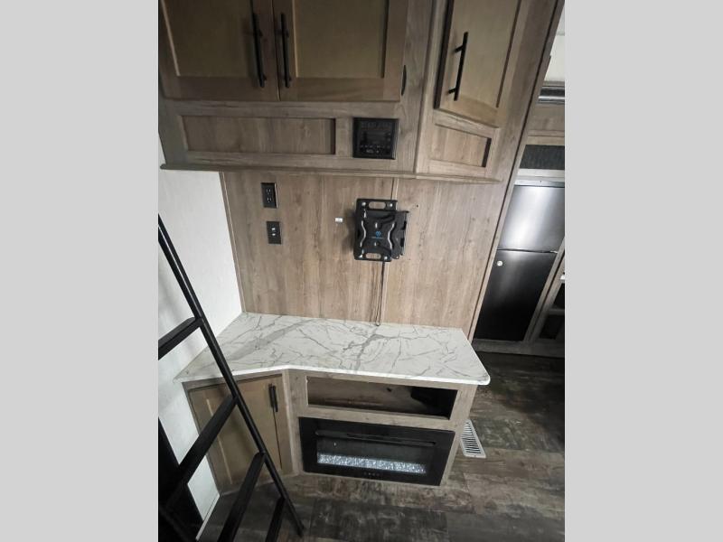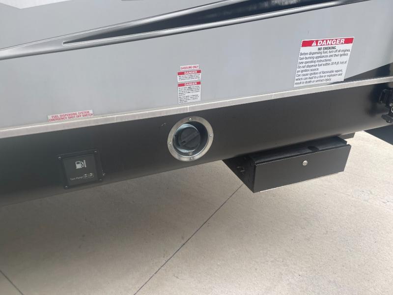 Sleeping space for ten people make this the perfect family unit to take to the lake! Your guests will have the 13' separate garage all to themselves that includes a half bath, a Happijac power bed with two sofas underneath, plus their own exterior entrance door for convenience. There is also a wrap around loft that will be great for any kids that tag along. Within the kitchen and main living area you will find dual opposing slides for added interior space, and the chef of the family can prepare dinner at the counter peninsula. Sit around the U-shaped dinette as you dine and enjoy the fireplace, or take your plate outdoors to sit under the two 12' power awnings! This model also includes a front master bedroom with a Wolf Pack king bed, dual wardrobes, and its own private entrance into the dual entry bath!