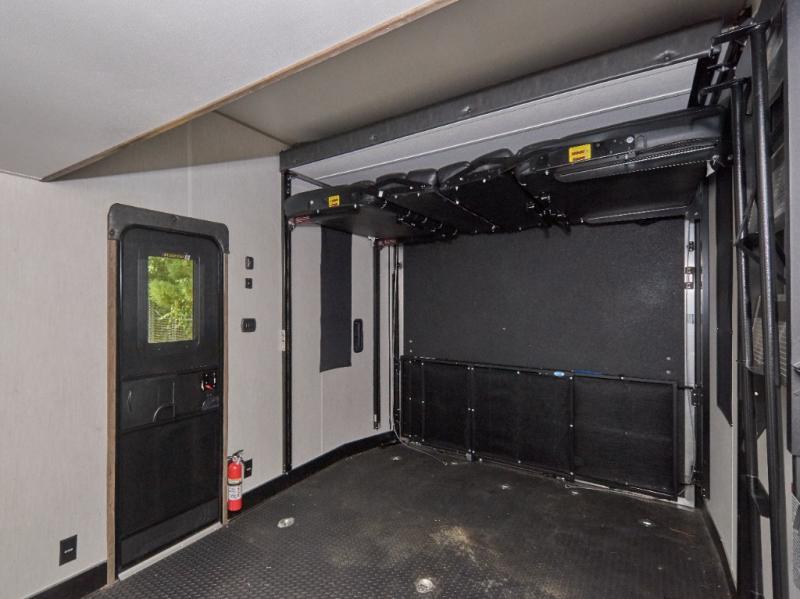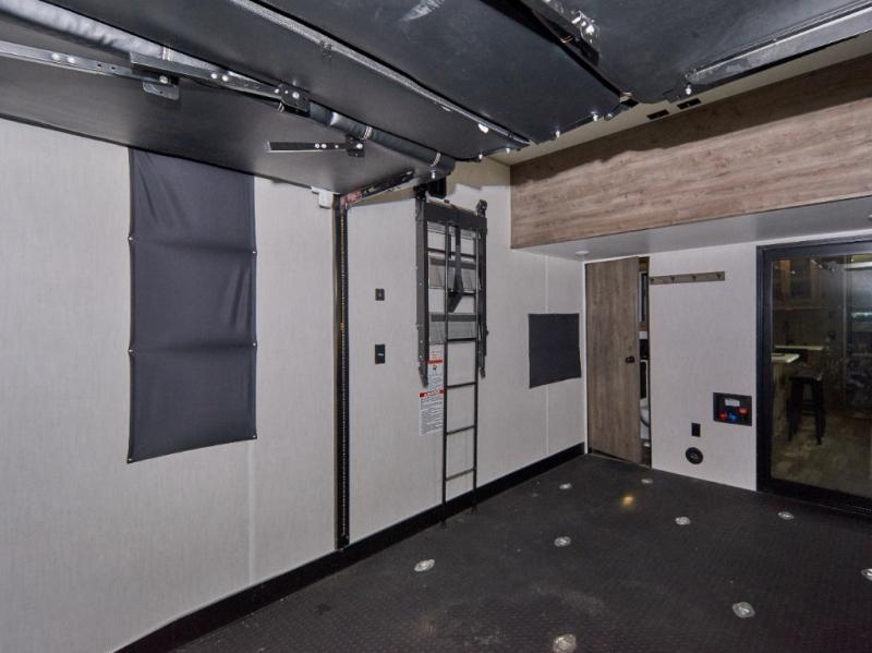 The Cherokee Wolf Pack 355PACK14 is your ultimate toy hauler for family adventures, weekend getaways, or extended stays. With a spacious 14' garage featuring a half bath, loft sleeping for five, and a private exterior entrance, your guests or gear get their own dedicated space.
