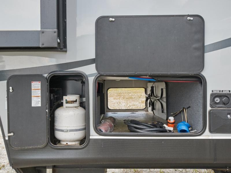 - Forced air heated underbelly and enclosed holding tanks for all-season camping