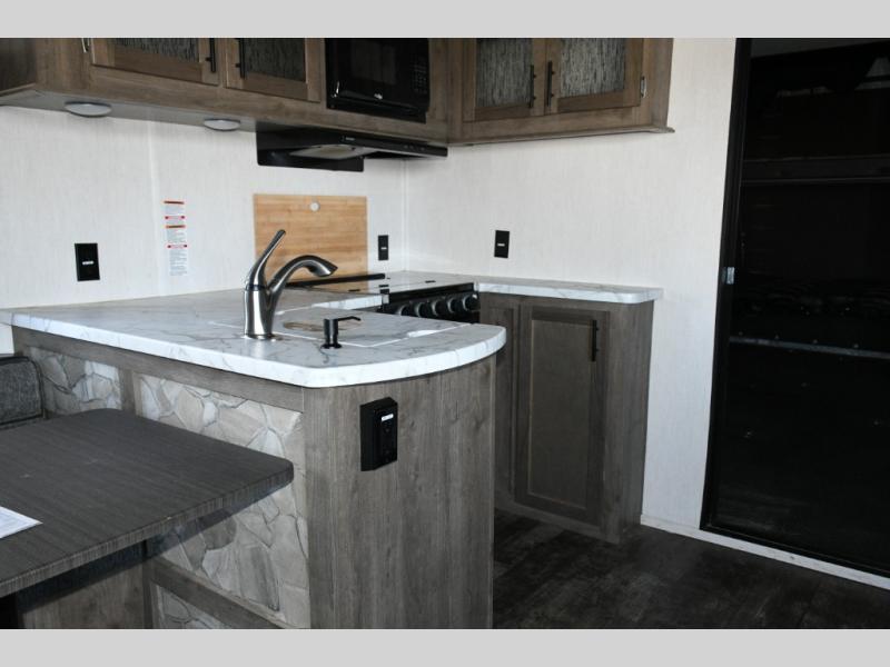 The dinette with bench seating gives you room for meals, game nights, or planning tomorrow’s ride.