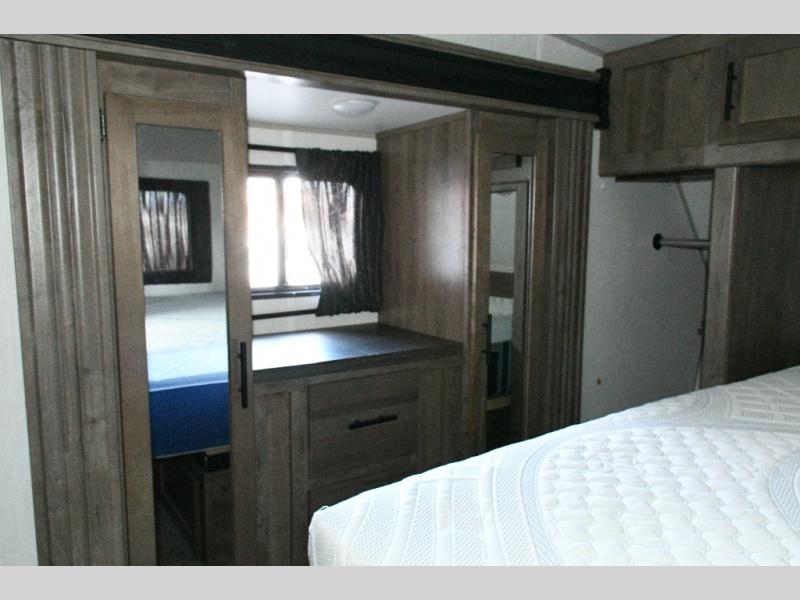 At night, the front master bedroom with its Wolf Pack king bed, large wardrobe slide, and private entry to the full bath gives you a comfortable retreat for recharging before another adventure-filled day.