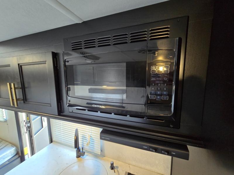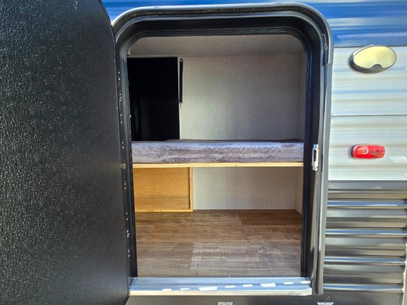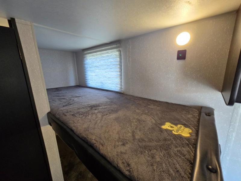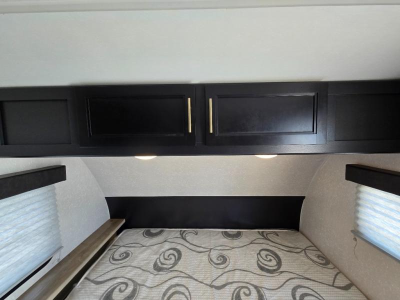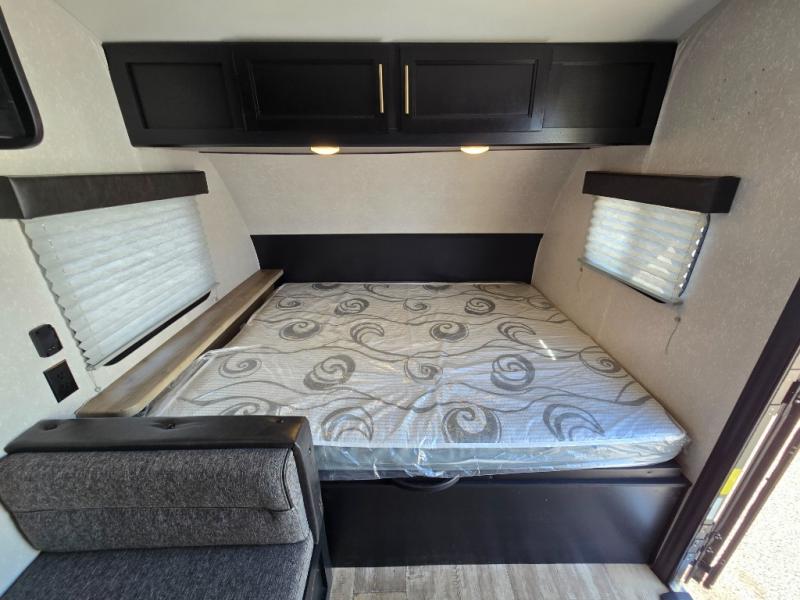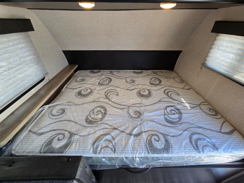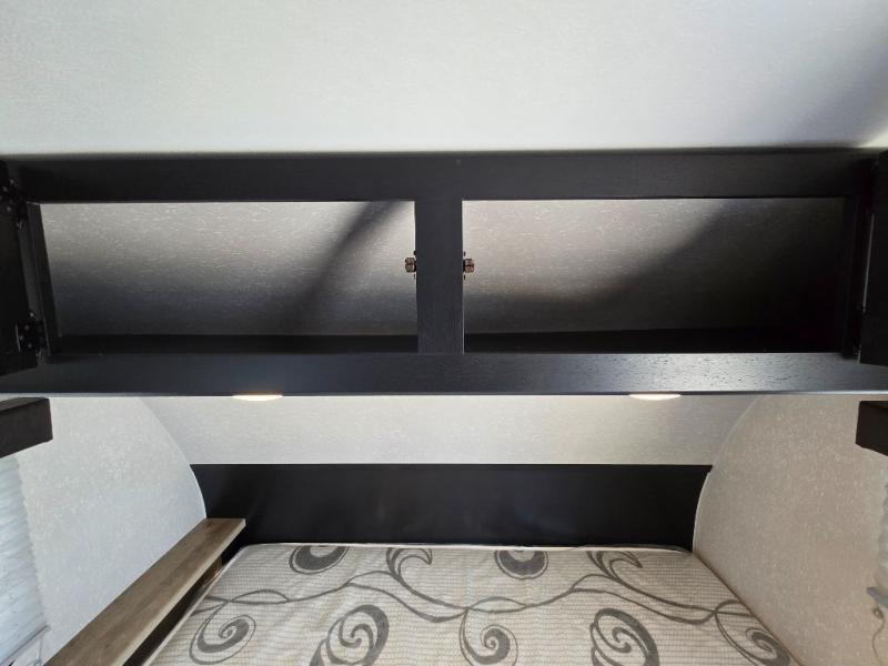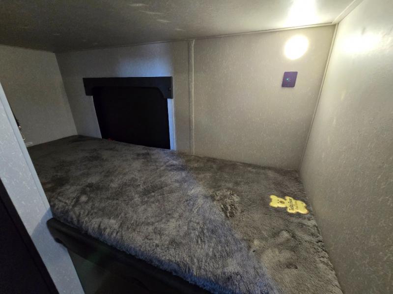 What I liked most: You can see a lot of thought has gone into this small end camper. The bunks and bed have been placed with space efficiency. The storage throughout actually has some nice depth.