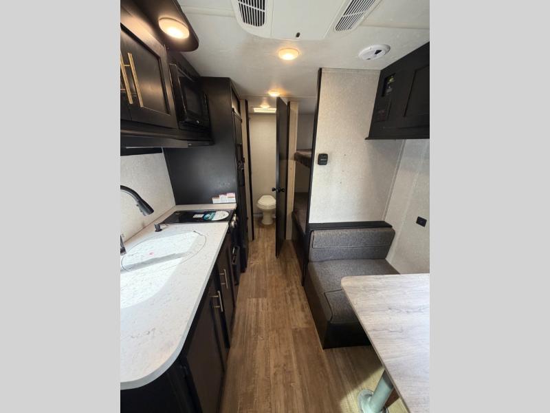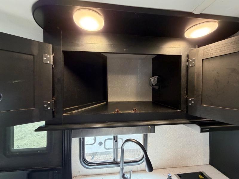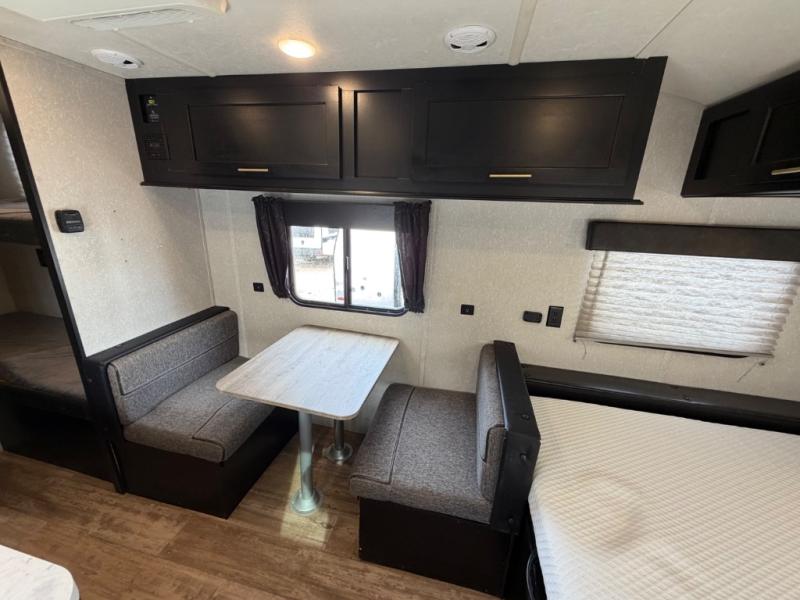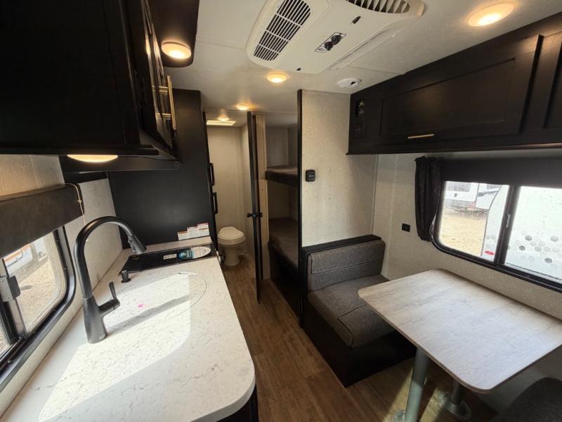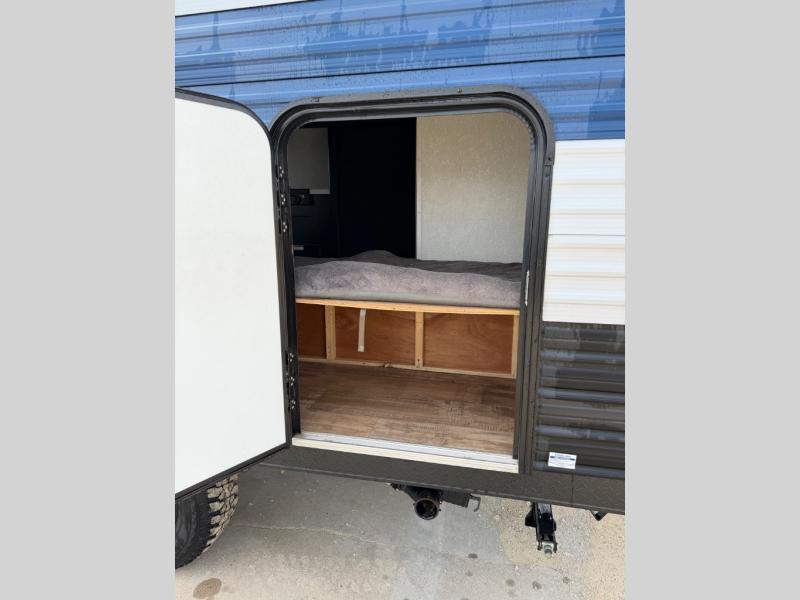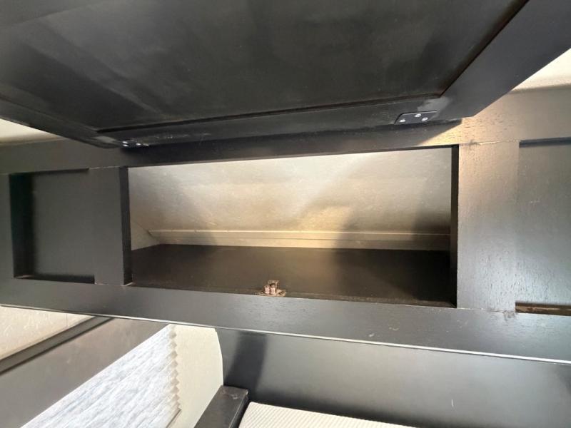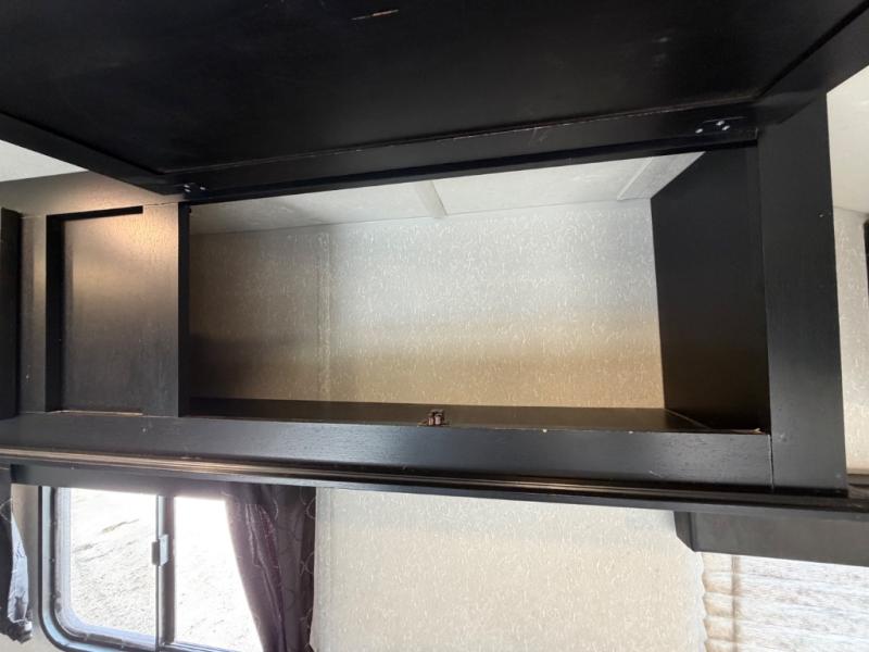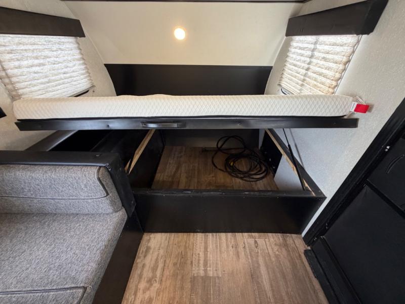 What I liked most: You can see a lot of thought has gone into this small end camper. The bunks and bed have been placed with space efficiency. The storage throughout actually has some nice depth.