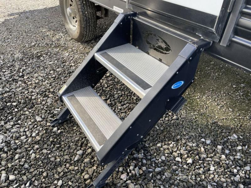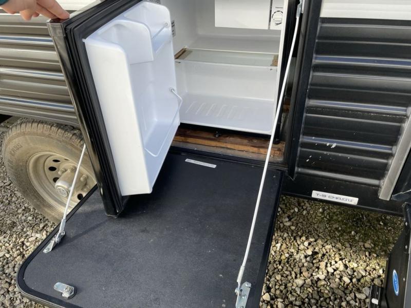 You are going to love the journeys you'll take and memories you'll make with the Forest River Cherokee Wolf Pup toy hauler and travel trailer! The back-up camera system is going to make it very easy to maneuver into the campsite, and the outside shower with hot/cold water will help you clean up while you are outside playing. The stereo has interior/exterior speakers so that you can listen to your music from just about anywhere, and you even get a Cherokee Total Control app and remote control system so that you can be in charge of your trailer's functions without much effort. The Cherokee Wolf Pup has a seamless roofing membrane with heat reflectivity, and the outside storage door is going to allow you to bring a little extra gear.