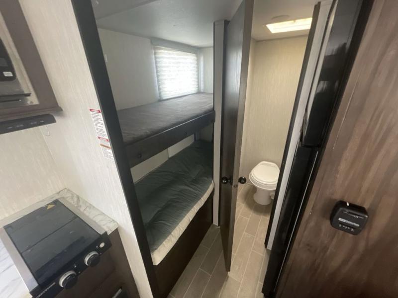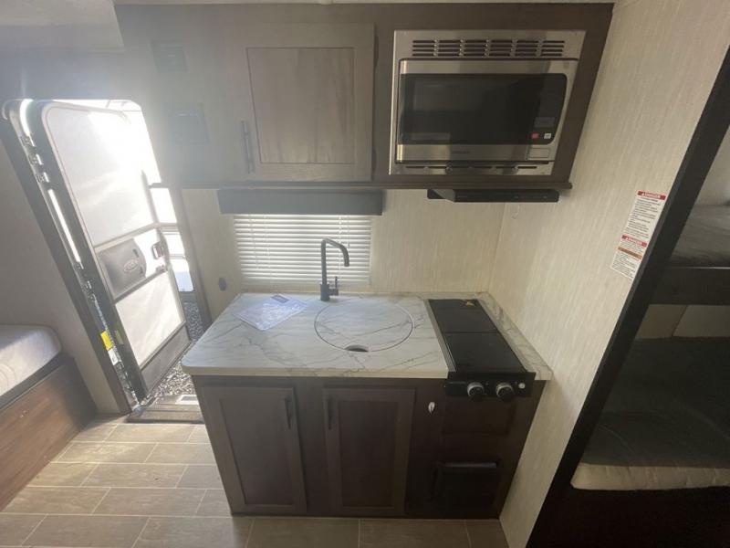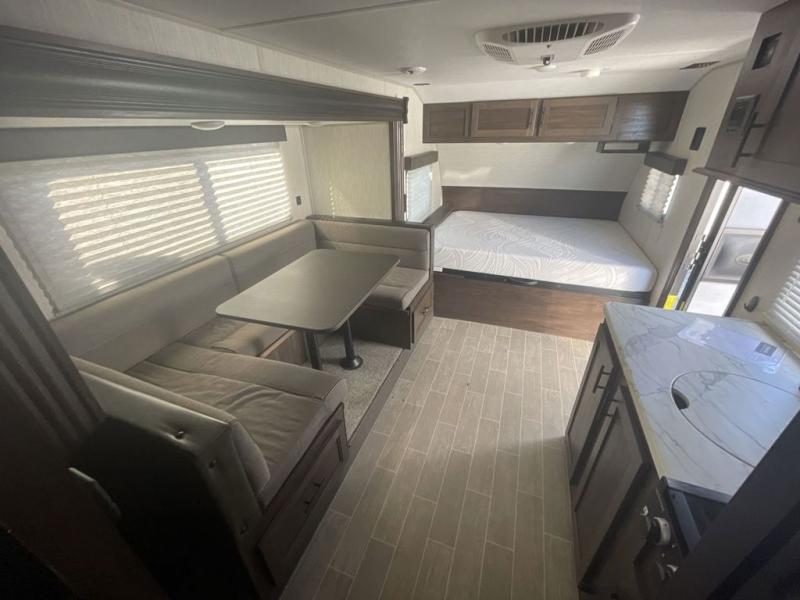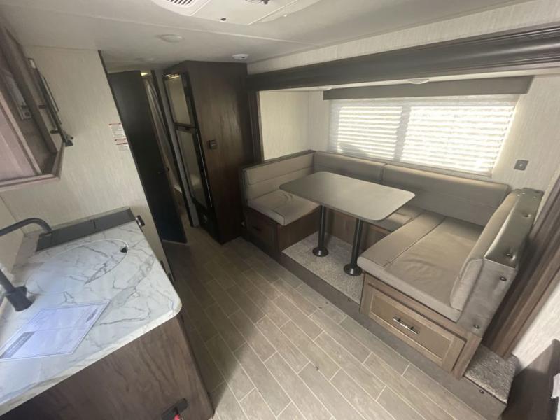 Get ready for some comfortable accommodations after you play outdoors with your RV friends at your favorite state park campsite with this Cherokee Wolf Pup travel trailer. You can sit and talk under the power awning all night thanks to the LED light strip, or you can play games at the U-shaped dinette back inside. The dinette rests on the single slide, and it also doubles as extra sleeping space if your kids' friends want to stay the night. Everyone can enjoy some privacy when getting ready in the bathroom, and the chef will love having a high-output cooktop and microwave to make meals and snacks as well as a sink and counter space to clean up everything afterwards.