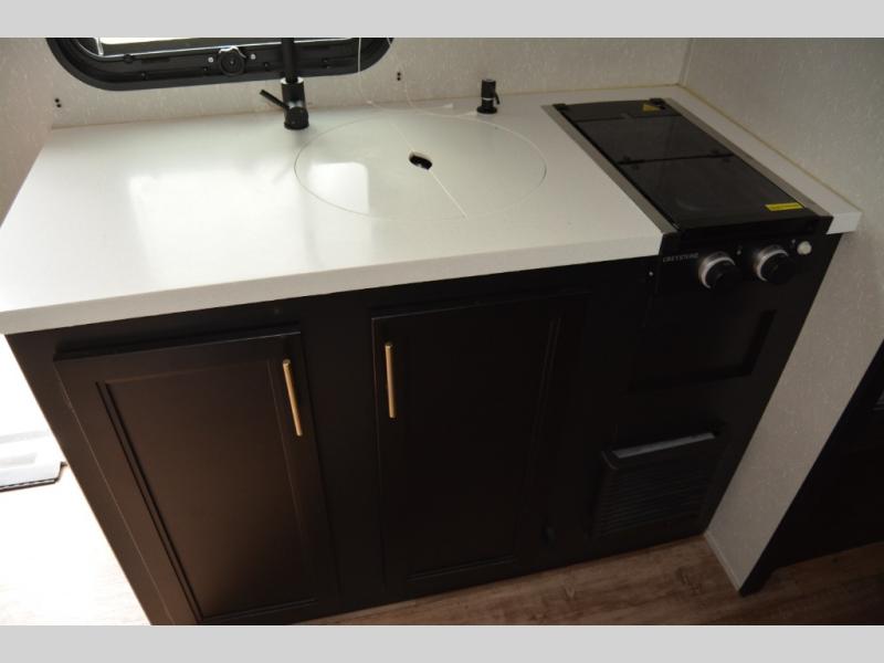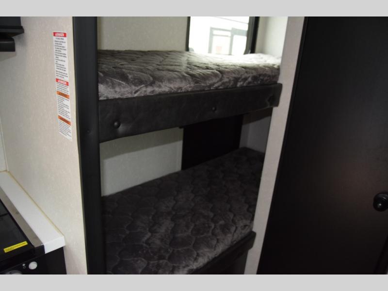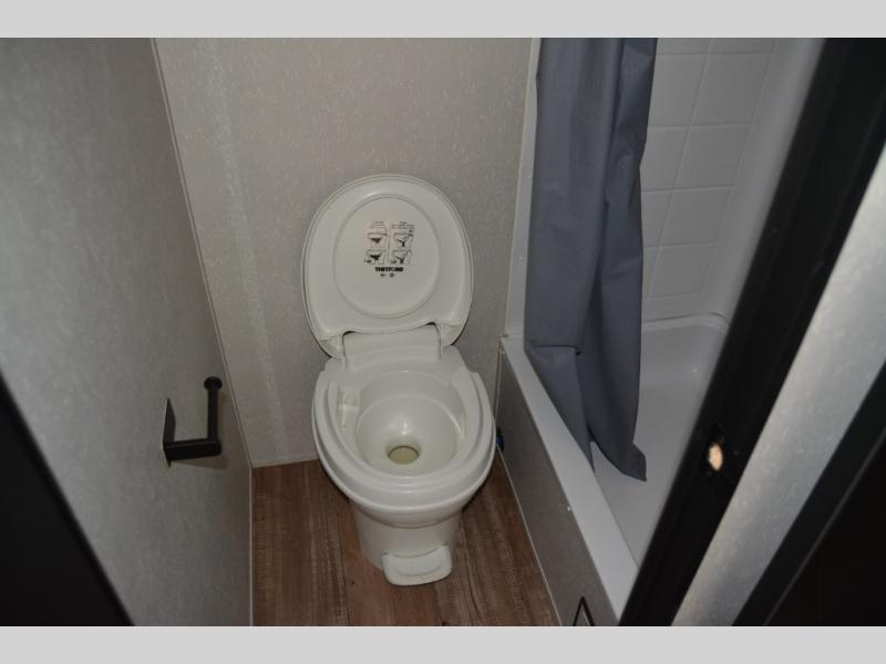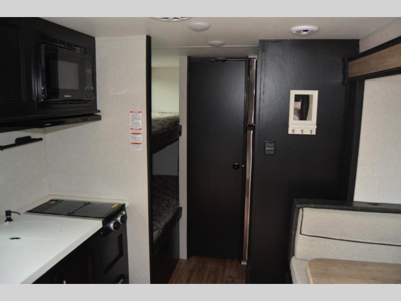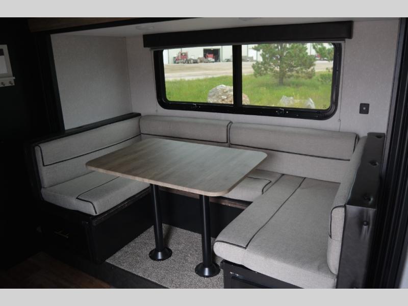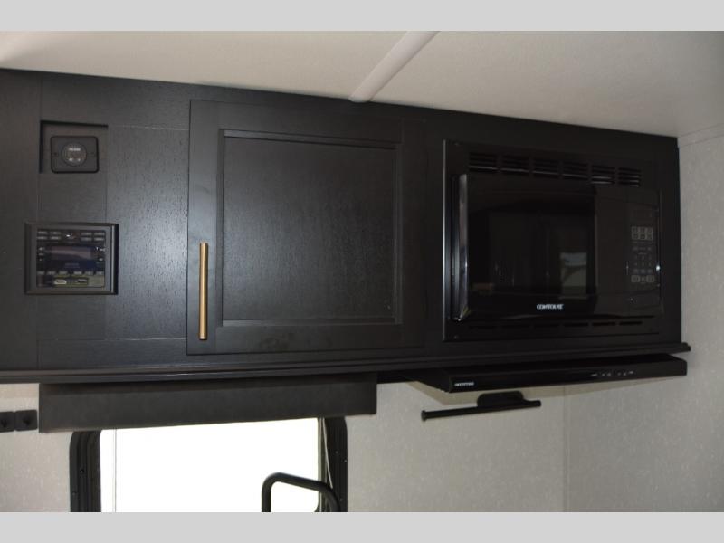 Get ready for some comfortable accommodations after you play outdoors with your RV friends at your favorite state park campsite with this Cherokee Wolf Pup Black Label travel trailer. You can sit and talk under the power awning all night thanks to the LED light strip at the awning, or you can play games at the U-shaped dinette slide out inside. The dinette also doubles as extra sleeping space if your kids' friends want to stay the night, and everyone can enjoy some privacy when getting ready in the bathroom that includes a toilet and shower. The chef will love having a cooktop and microwave to make meals and snacks, as well as a round sink and counter space to clean up everything afterwards.