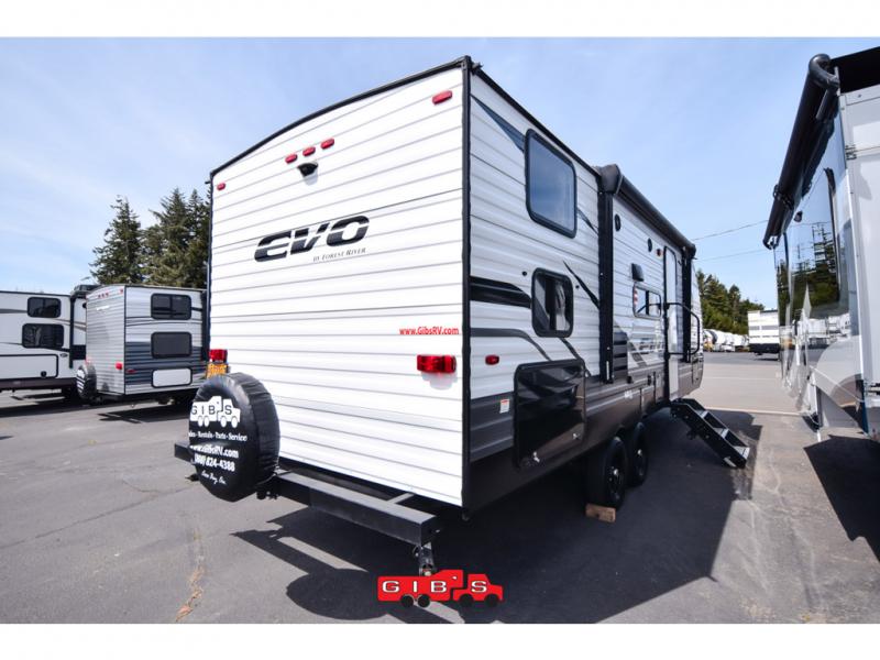 The Forest River EVO Lite travel trailers and toy haulers have been designed by some of the best so that you can experience great form, function, and style each time you get away! The EVO Lite has an upgraded appliances package so that you know you're cooking with the best, and the extra-large panoramic windows will certainly bring in lots of natural light and plenty of breathtaking views. You can use the Bluetooth stereo and exterior speakers to really crank up the tunes, and the stabilizer jacks will keep your unit secure while you camp. The EVO Lite also comes with a cable TV hookup, LP quick disconnect, black tank flush, and a spare tire and carrier.