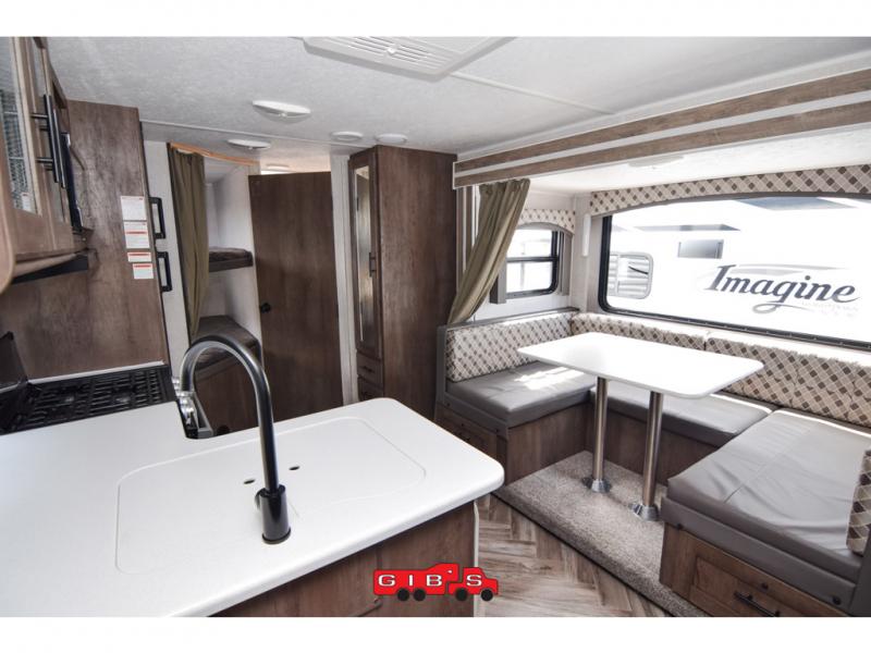 Eat, sleep, play, and relax all in this EVO Lite travel trailer that can sleep eight people each night. Mom and dad will appreciate the front private bedroom with a queen bed, and the kids can claim the double-size bunks as their own. There is also a U-shaped dinette within the slide out that will be great for meal times and additional sleeping space. The chef of the family can make meals on the three-burner cooktop, and if you choose to add the optional exterior kitchen, you can also use that to make meals. This model includes plenty of storage space, including dual wardrobes in the bedroom, overhead cabinets, plus the pass-through storage for fishing poles and such!